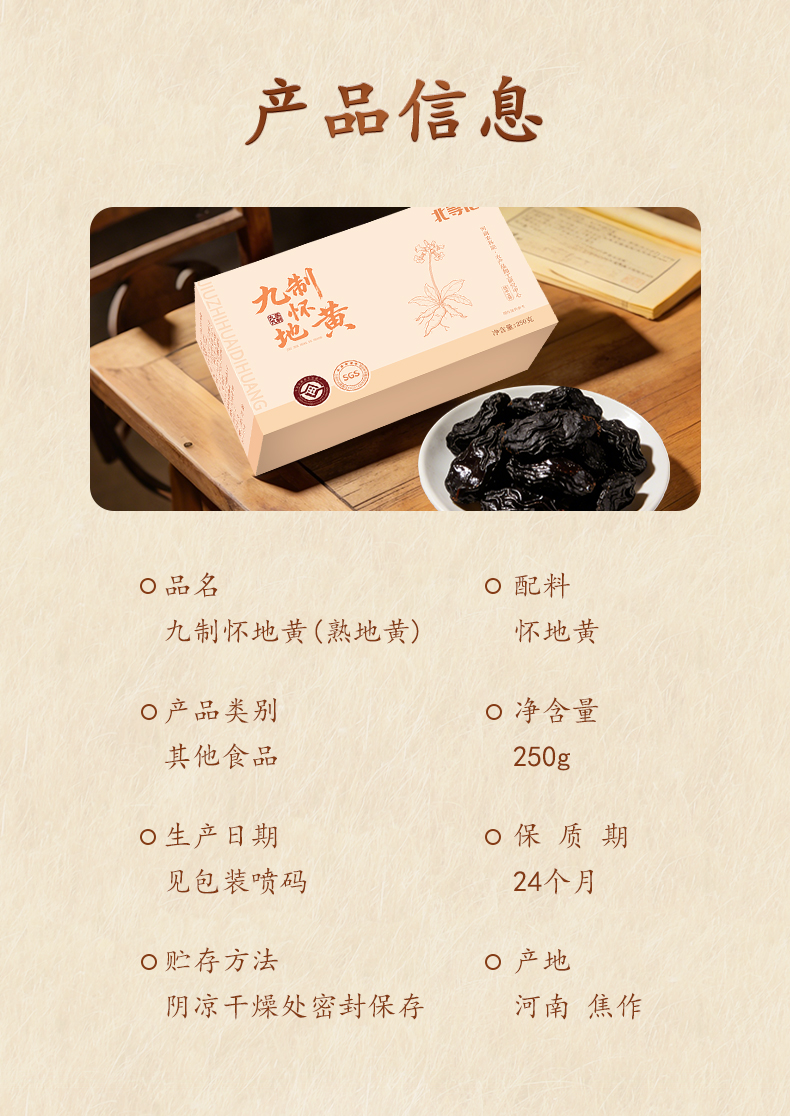 【熟地】农科院九蒸九制熟地黄河南焦作地黄即食泡水 250克/盒,内含独立小袋