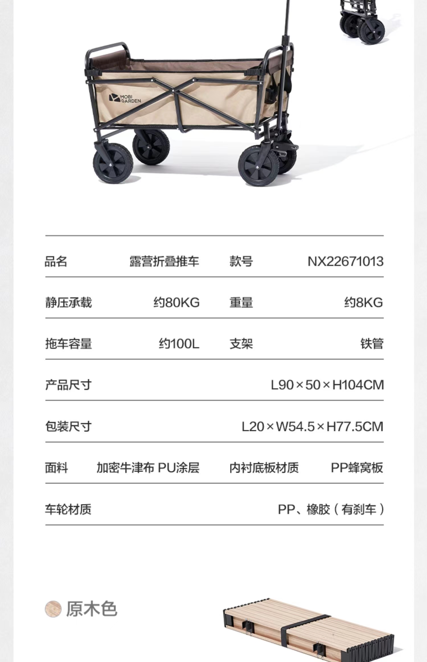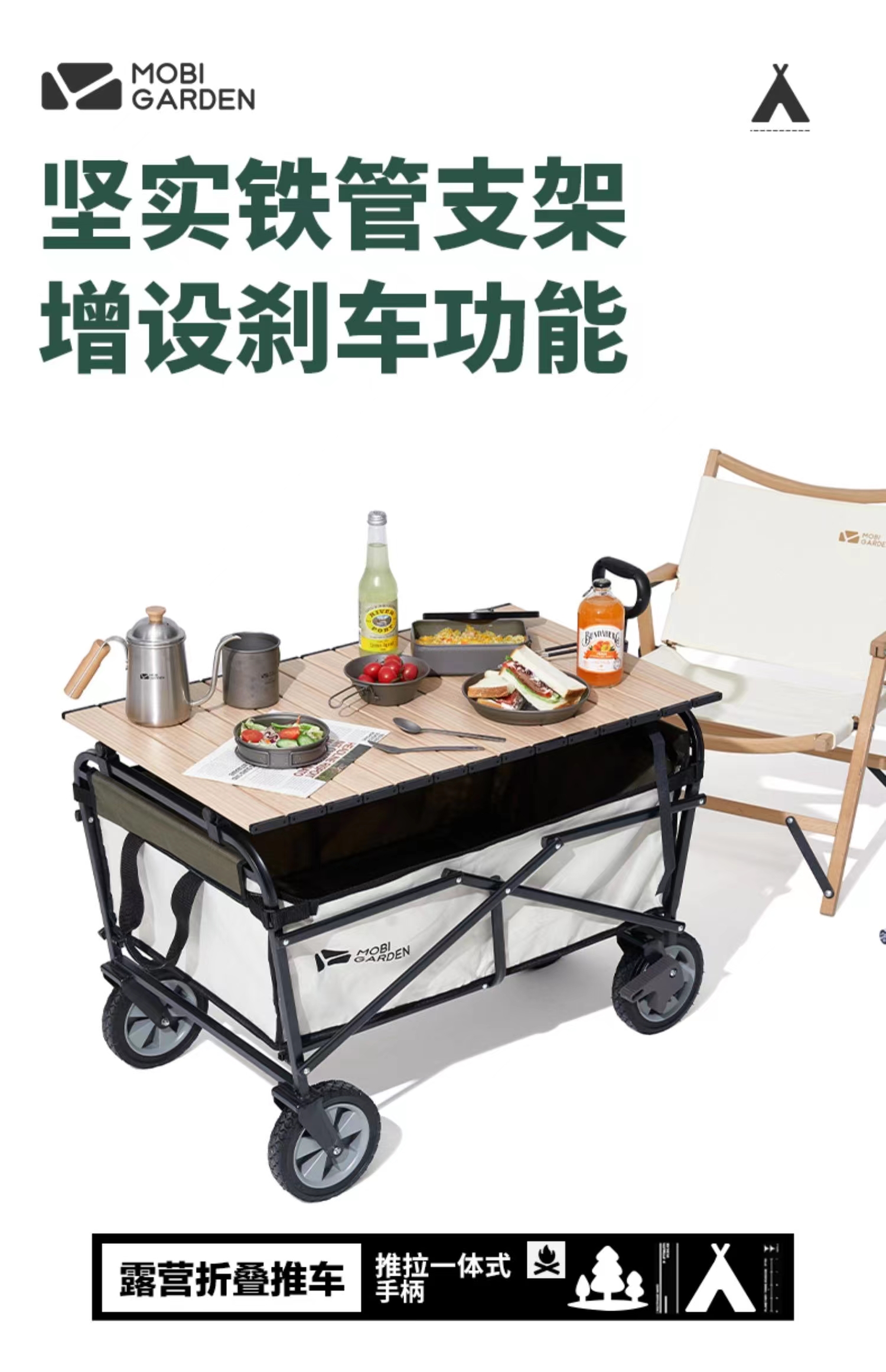牧高笛户外露营便携式野营折叠车便携小推车营地车便携拖拉带刹车