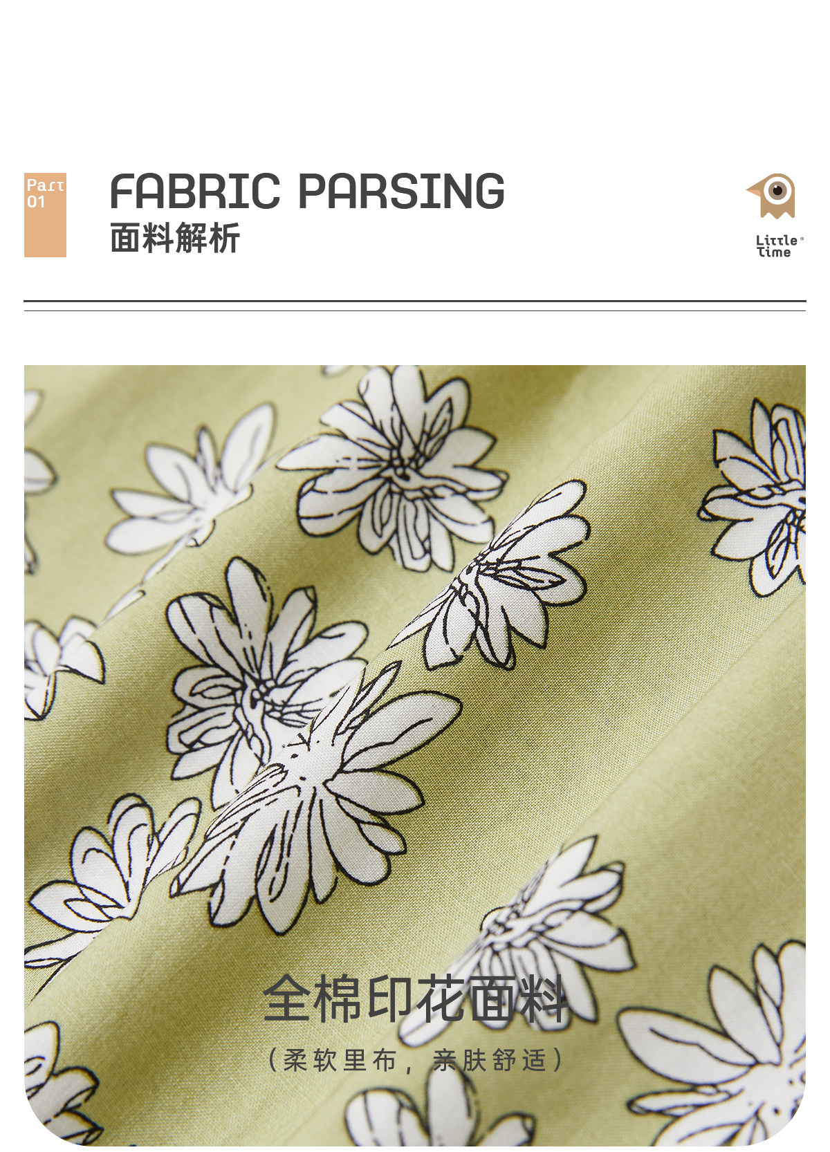 ittletime女童绿色旗袍裙中国风汉服碎花连衣裙