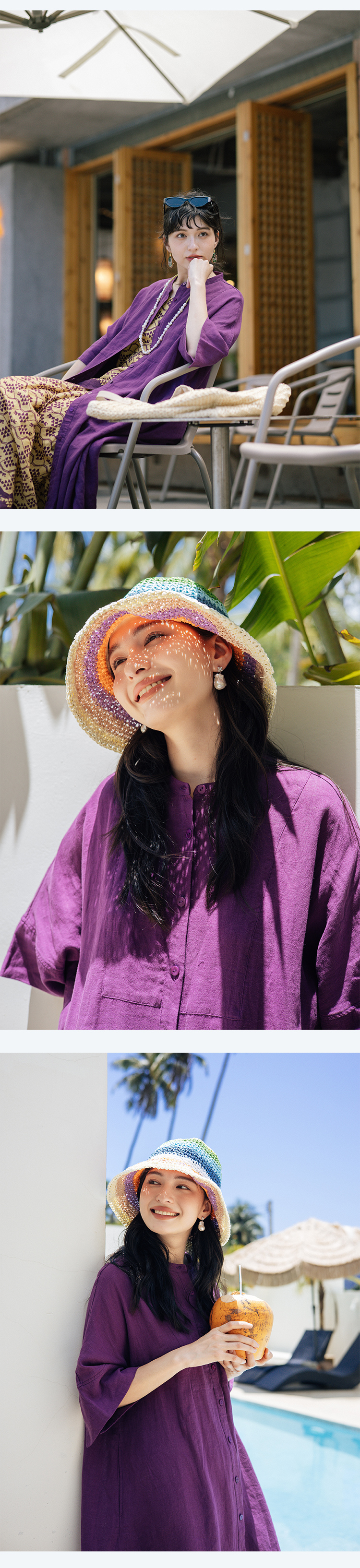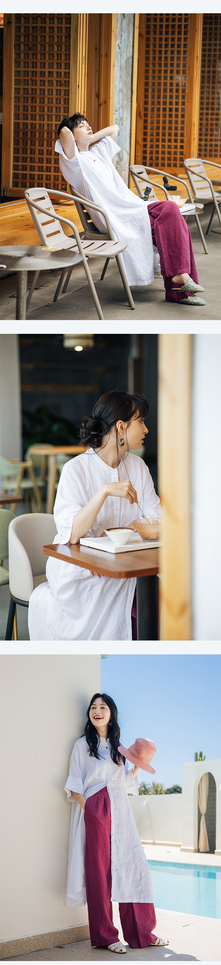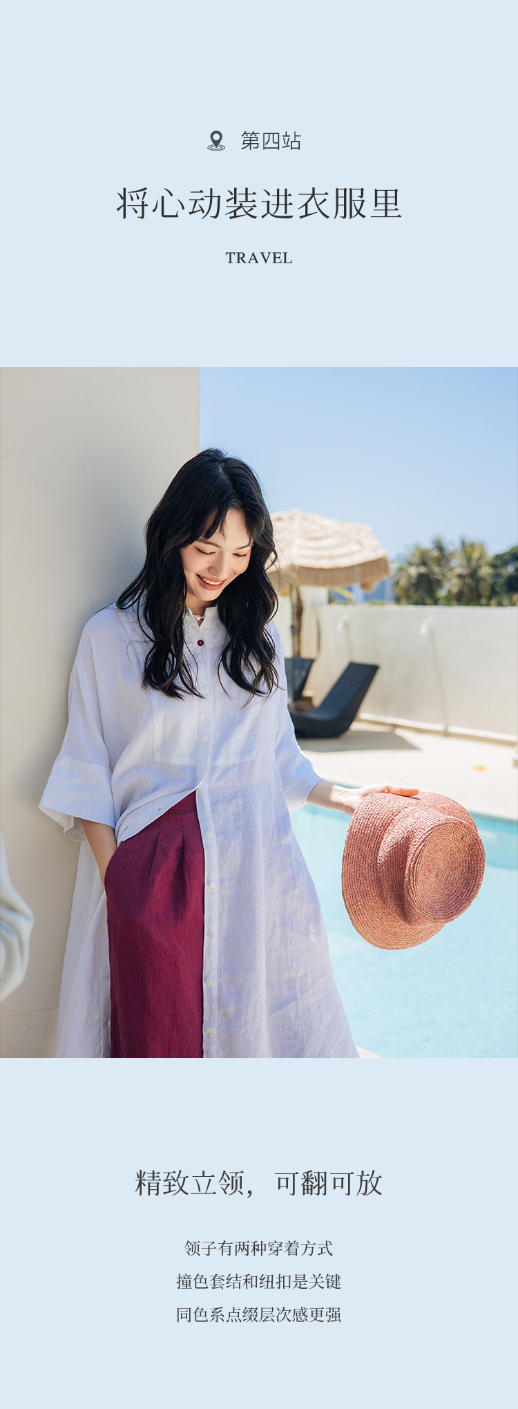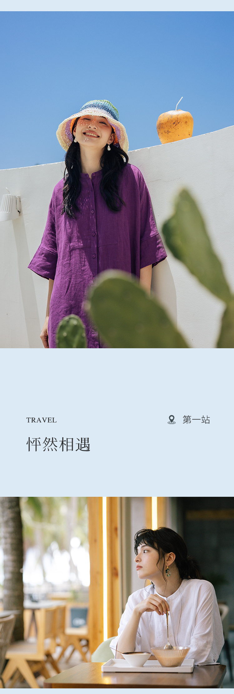 以天然亚麻为载体,融合热烈色彩与自在剪裁为身在城市、心怀远方的女性提供兼具美学与舒适的旅行着装
