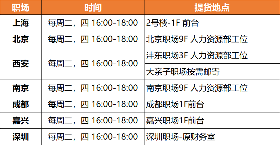各职场提货地址: