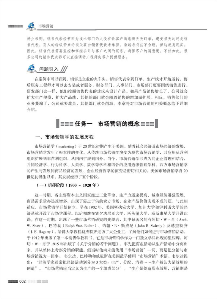 市场营销概论既是财经类专业教学的一门基础课程,又是电子商务专业中网络营销、市场营销策划、商务谈判等课程的先修课程,所以,本教材在编写时采用了大量的与电子商务相关的实例,以“理论讲透,实务足够,案例同步,实训到位”为原则,以“任务驱动,项目导向”教学模式为切入点,能够将理论与实践建立充分和密切的联系,通过实践场景让学生从中加深对相关理论的理解,最终让他们用理论解释实践,这是让学生吸收知识、培养能力的有效途径。