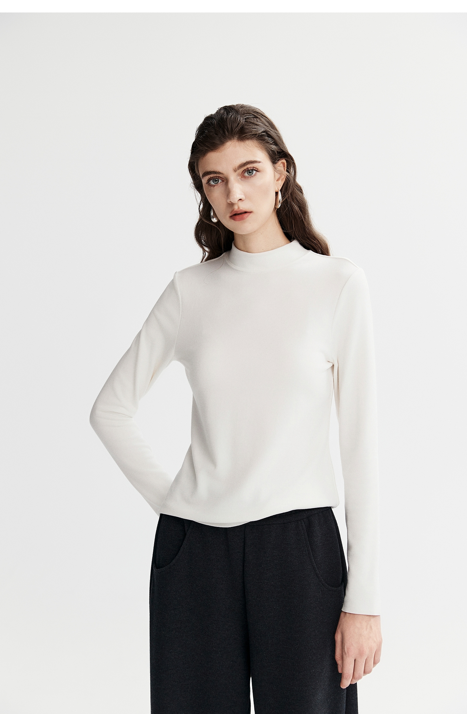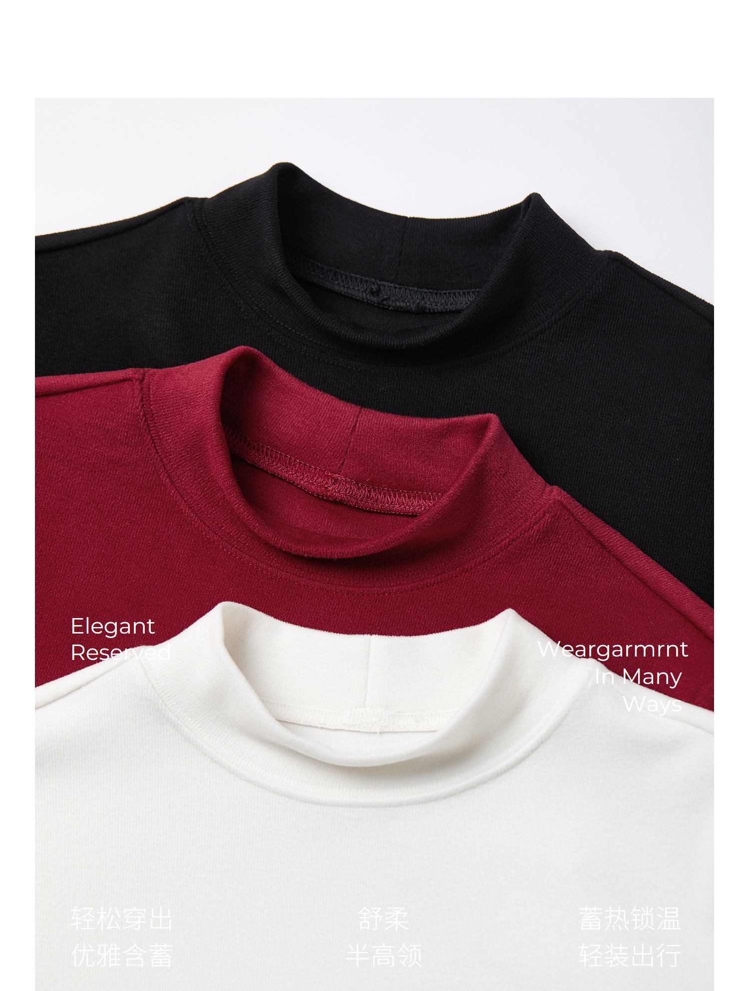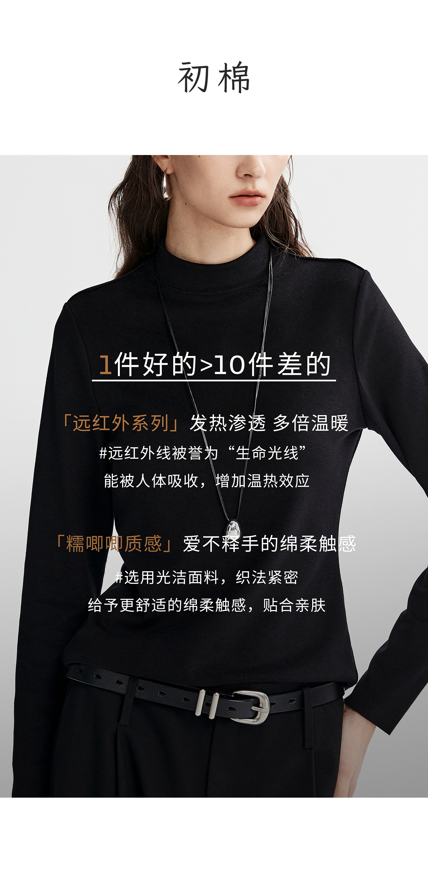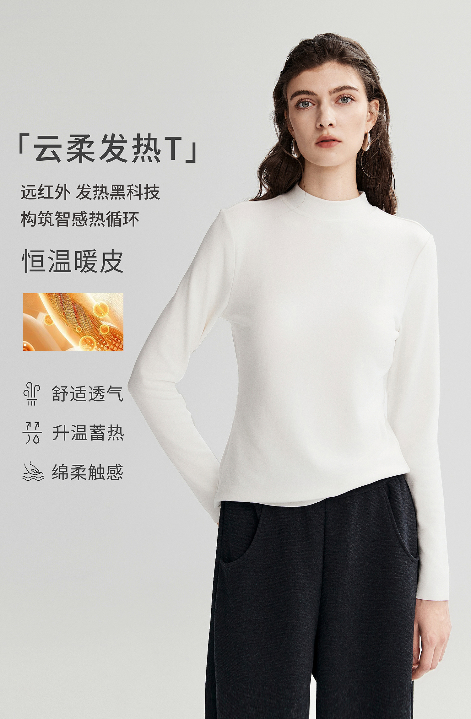 棉仓367601008-【暖洋洋】云朵半高领打底衫女25秋冬 修身发热长袖T恤内搭
