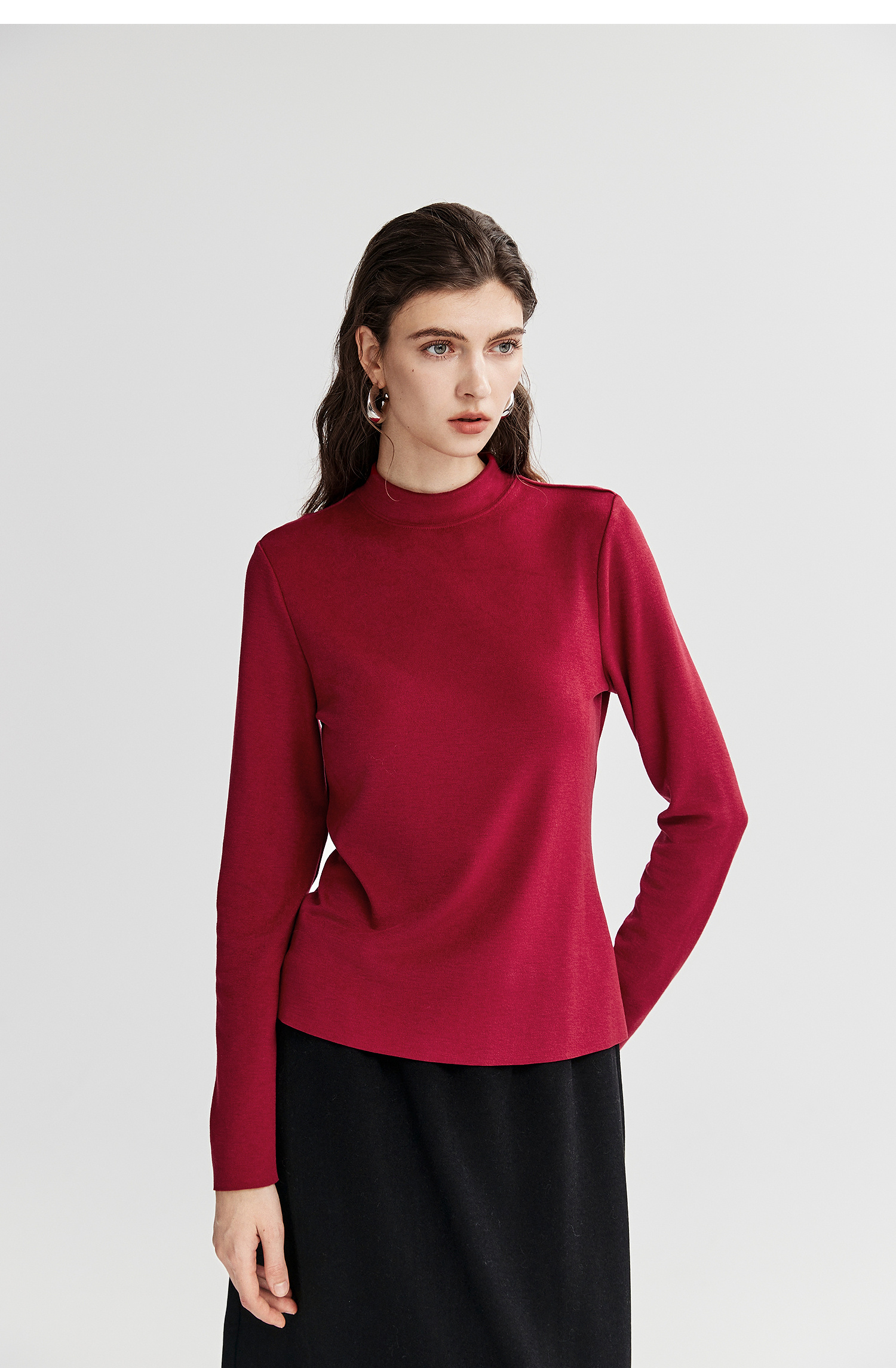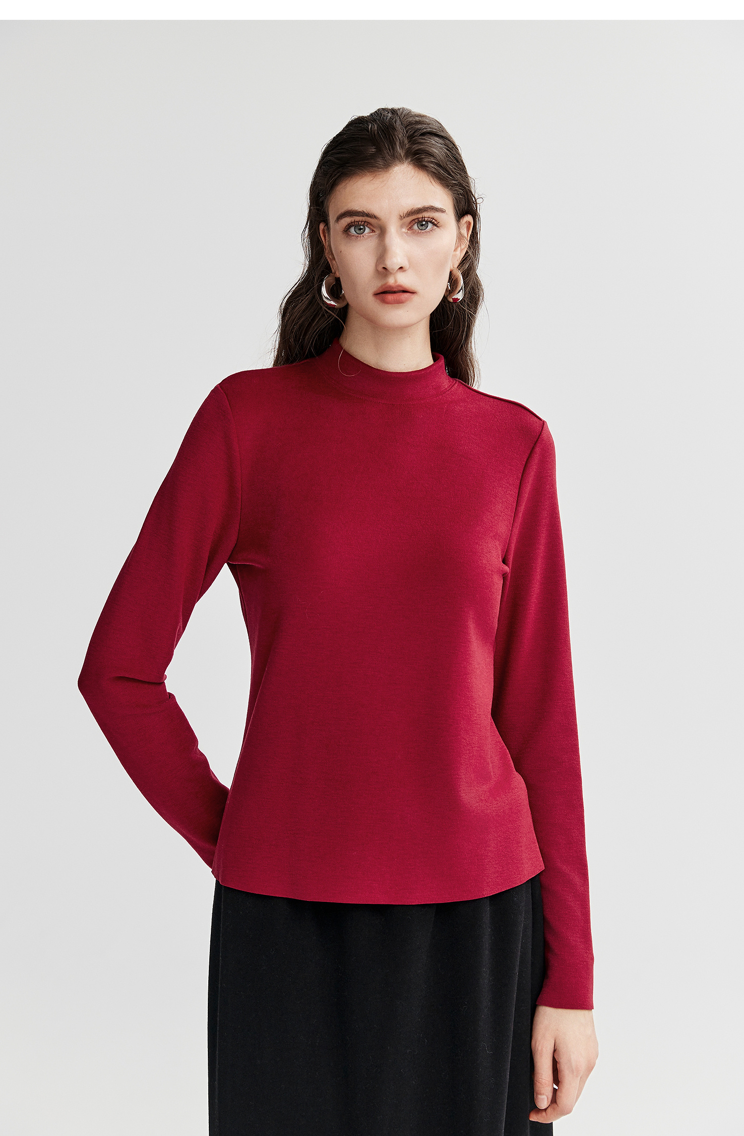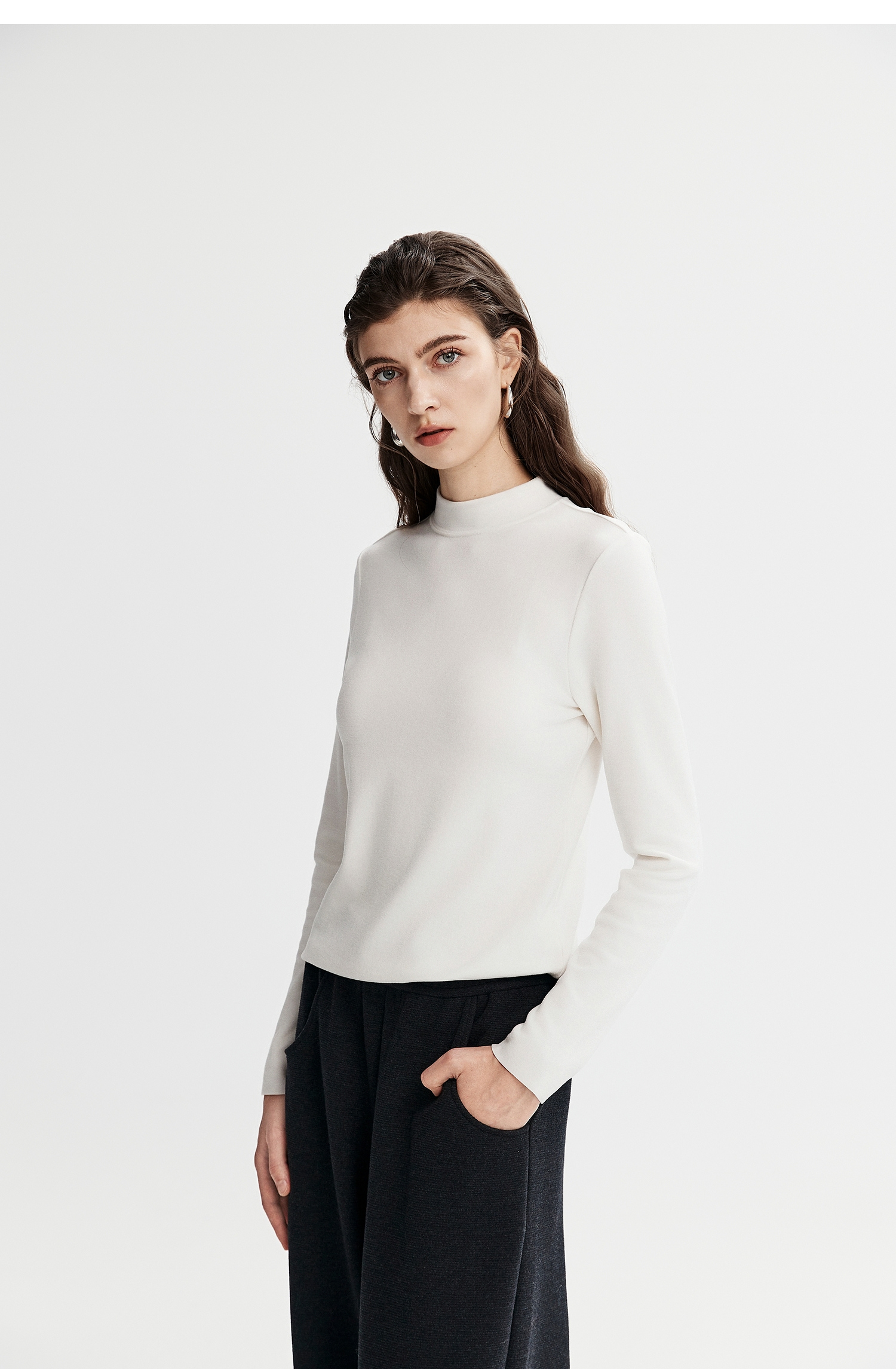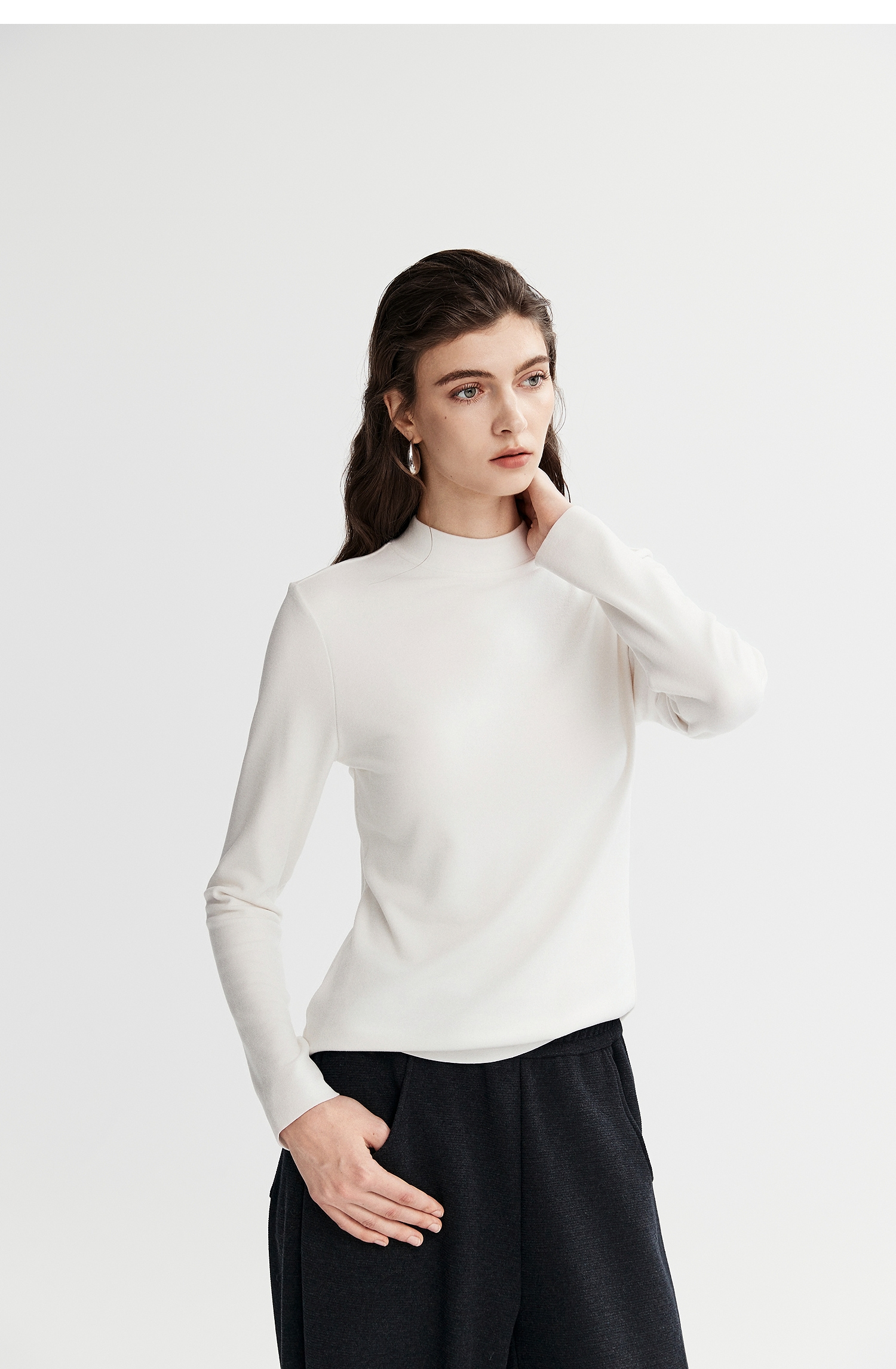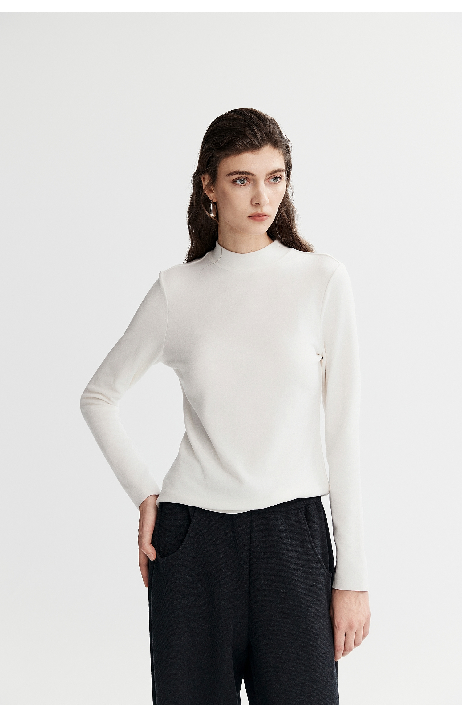 棉仓367601008-【暖洋洋】云朵半高领打底衫女25秋冬 修身发热长袖T恤内搭
