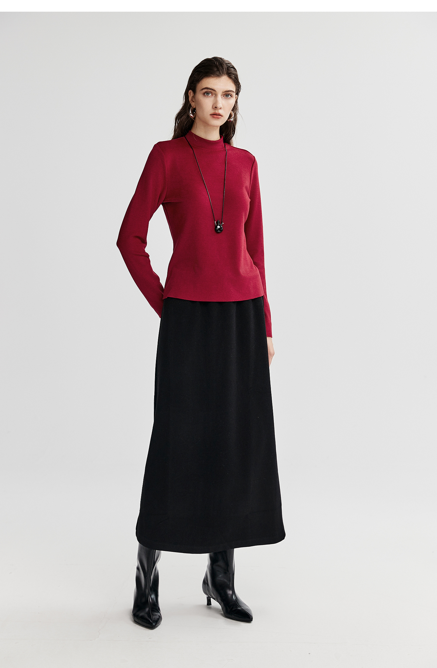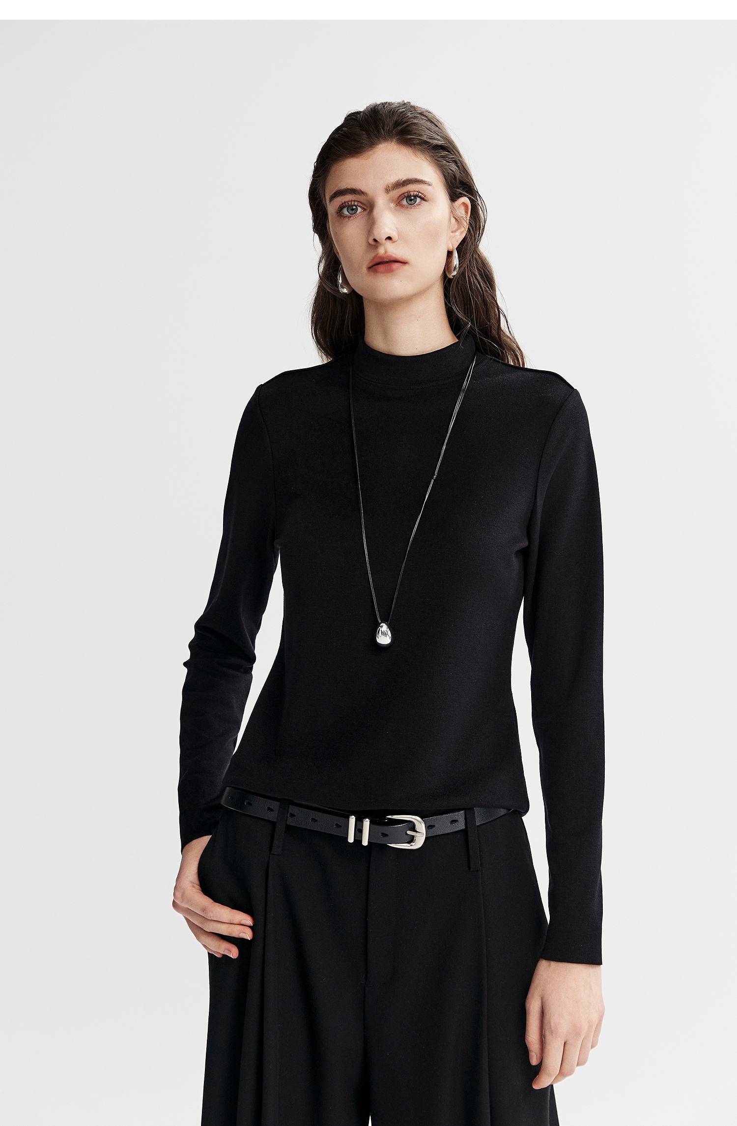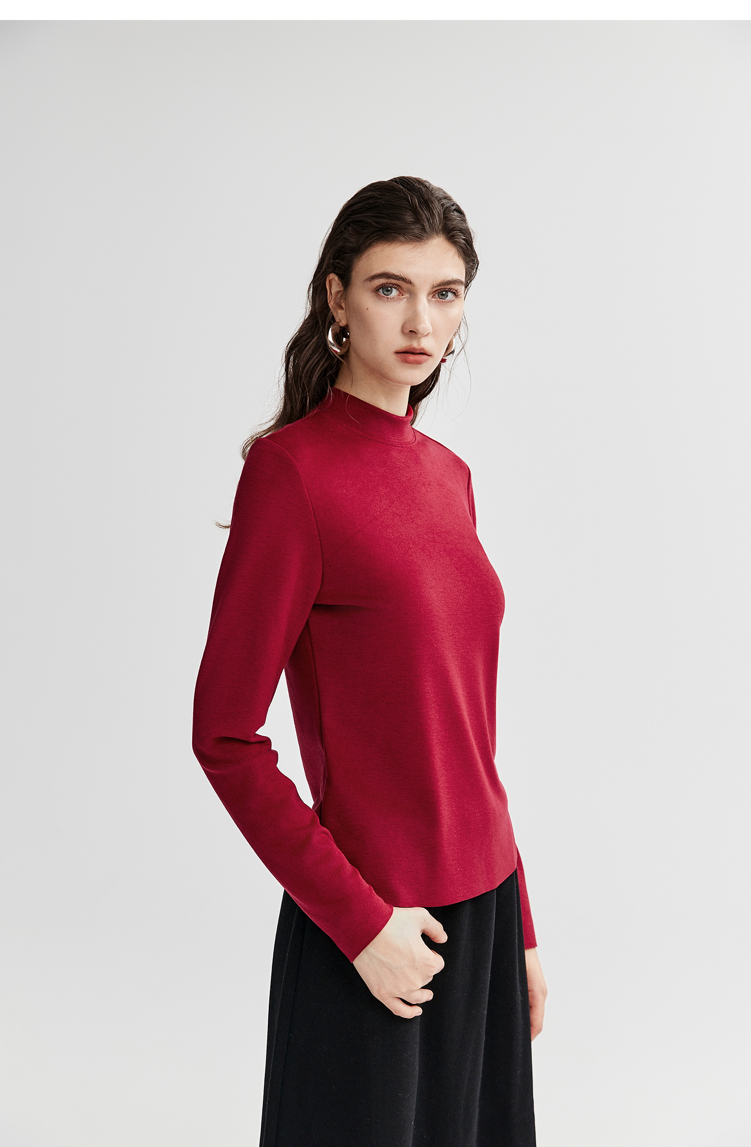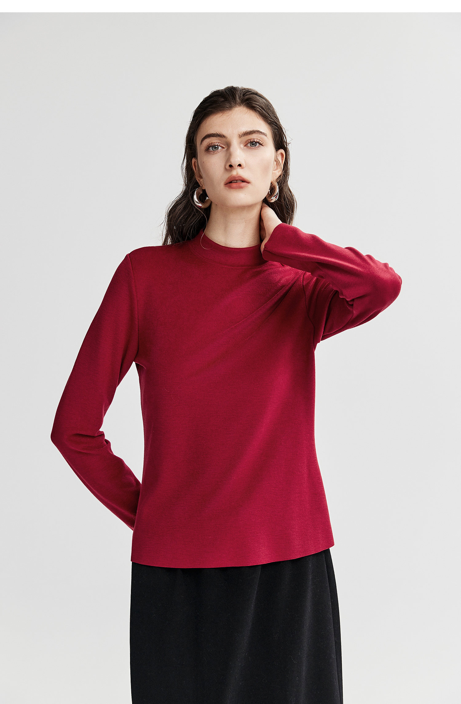 棉仓367601008-【暖洋洋】云朵半高领打底衫女25秋冬 修身发热长袖T恤内搭