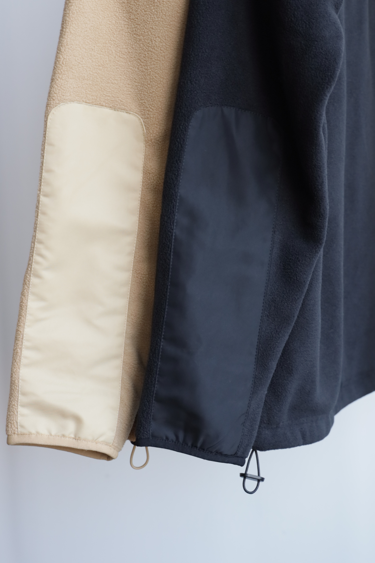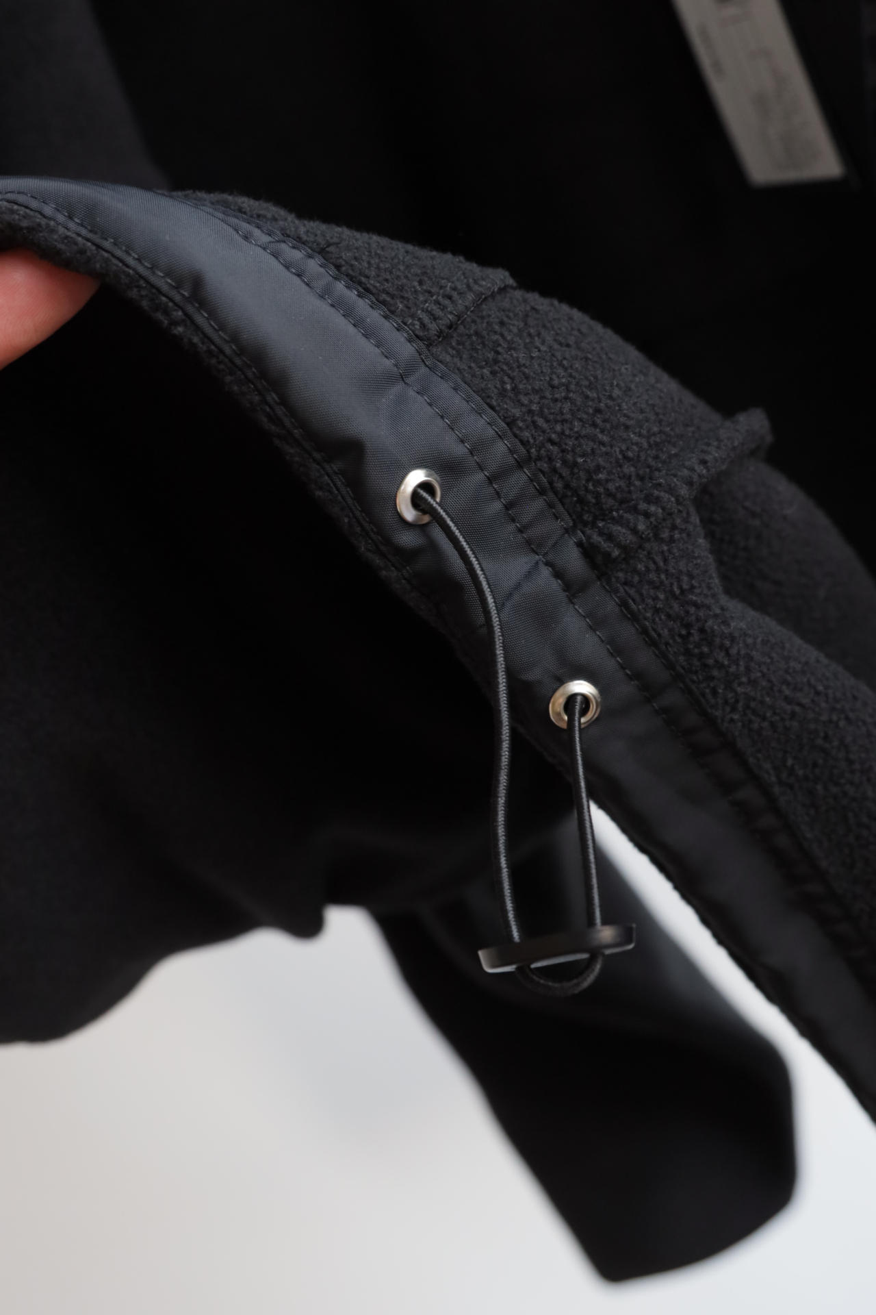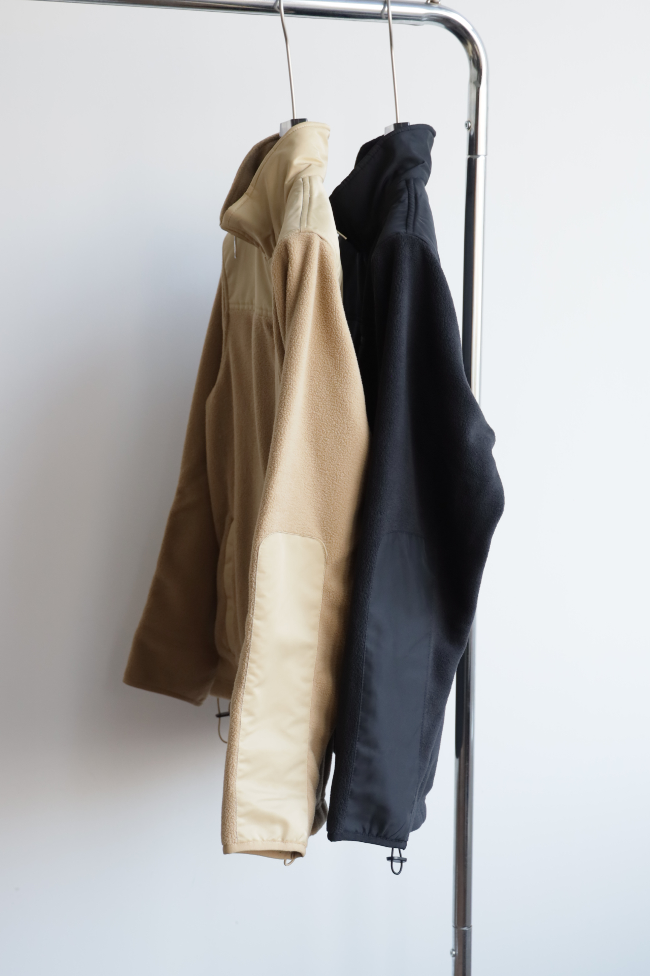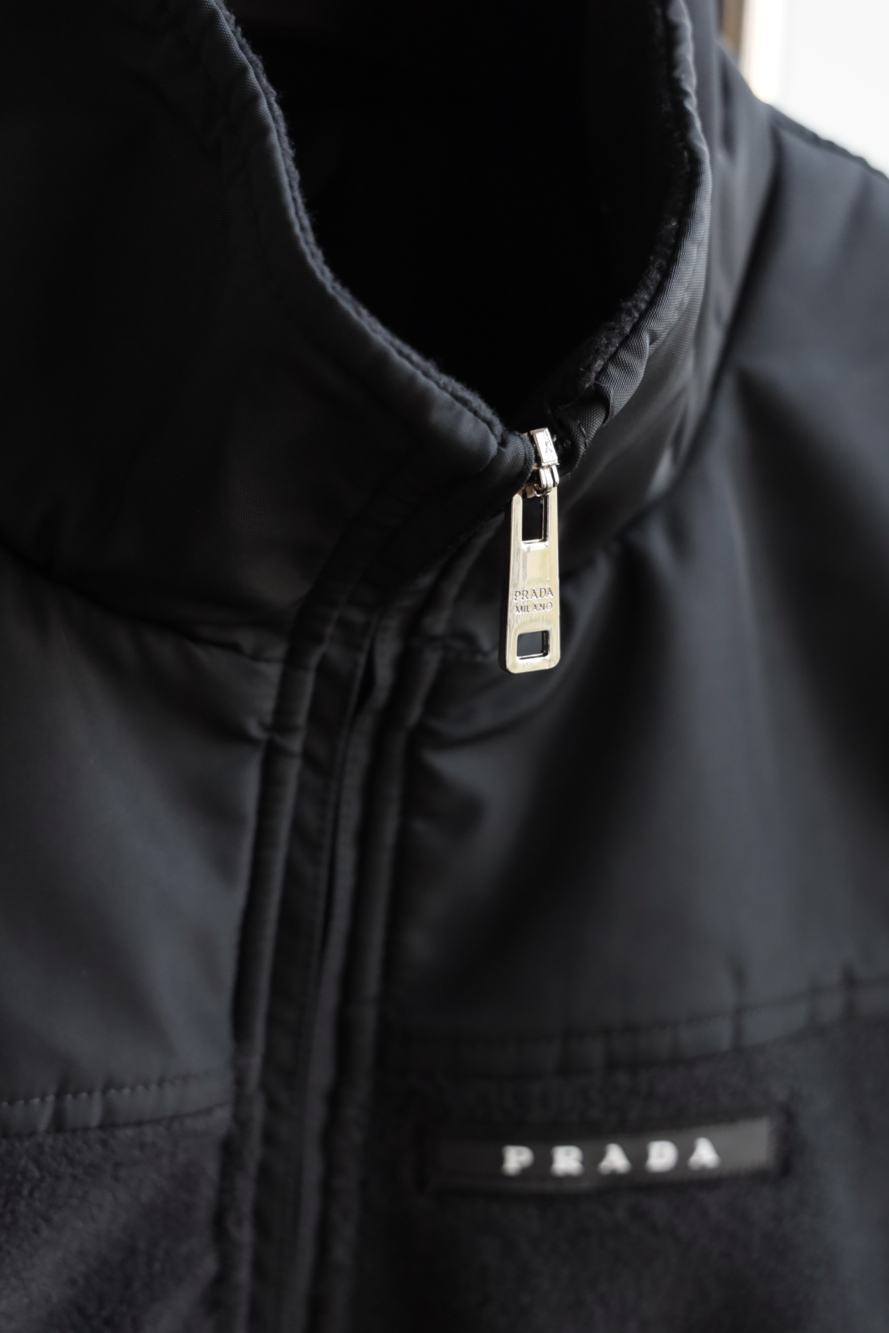 上下尼龙拼接摇粒绒设计,很有亮点,胸口铭牌LOGO点缀