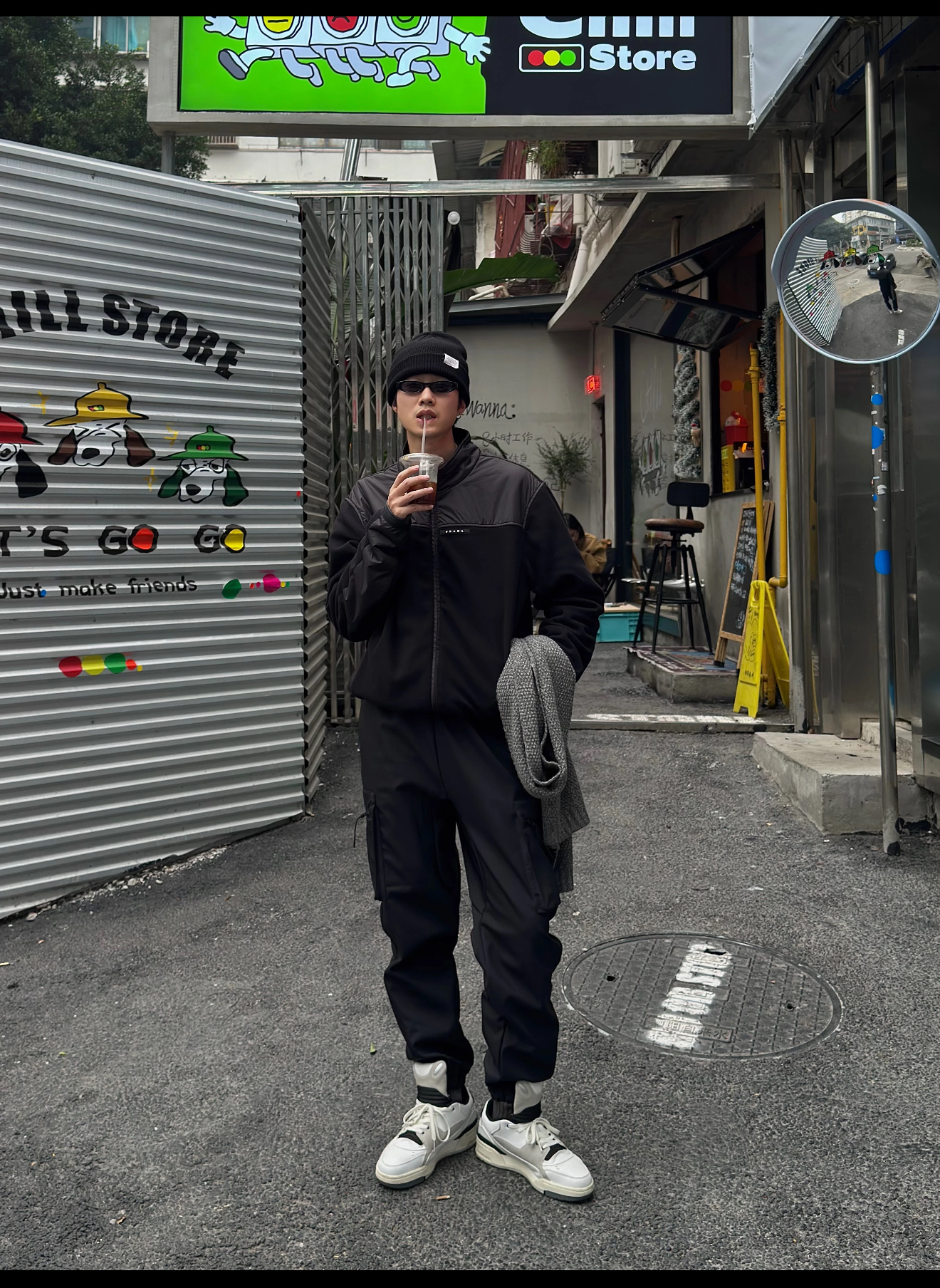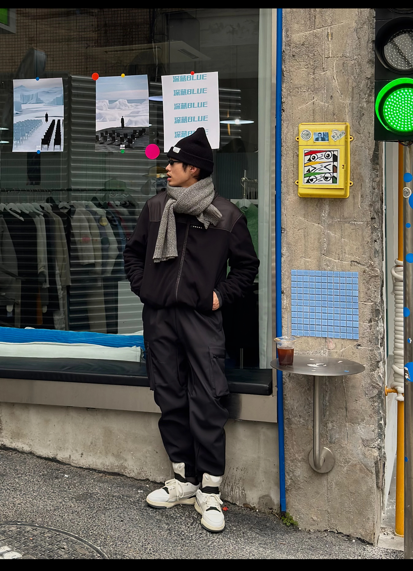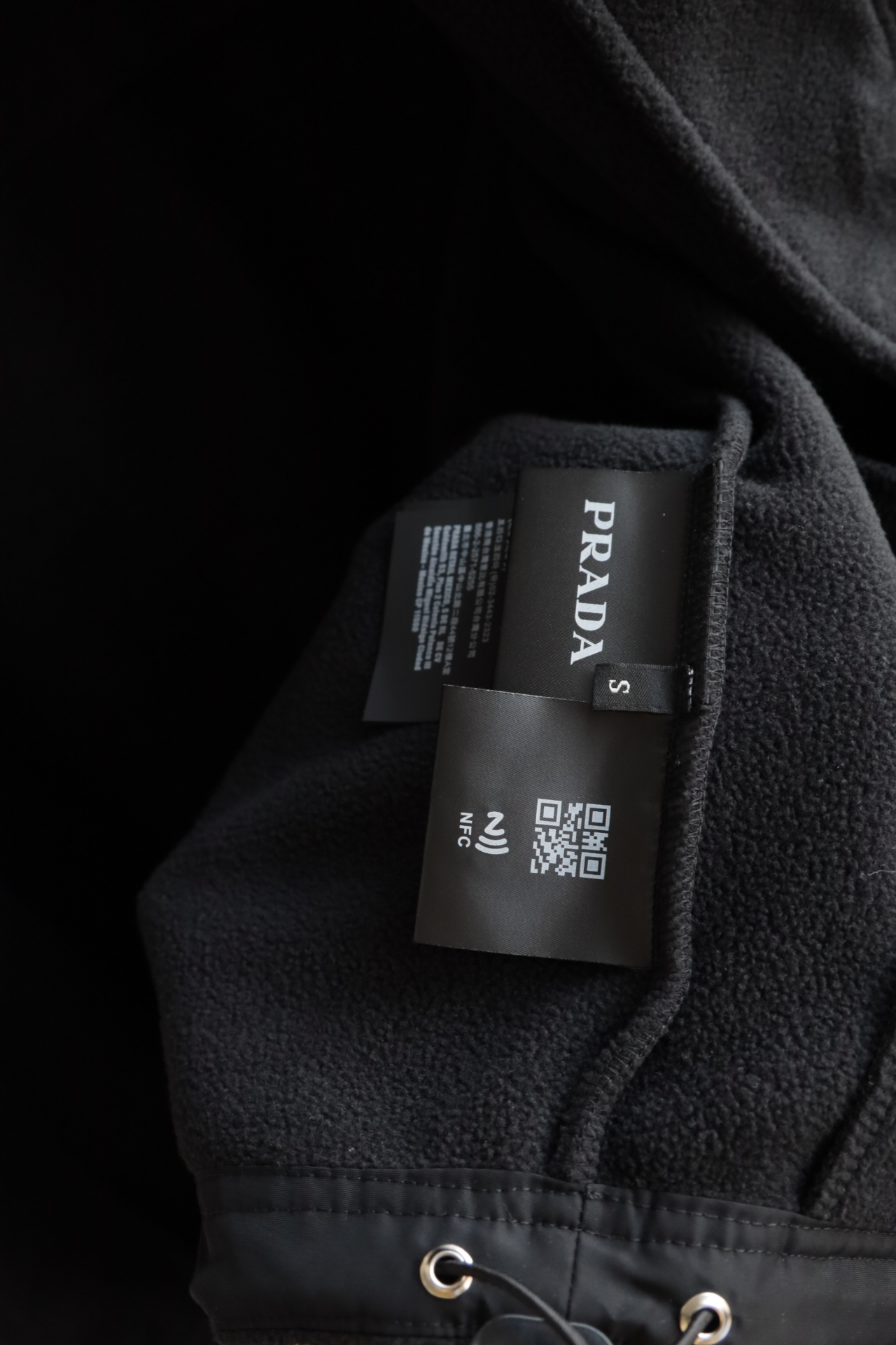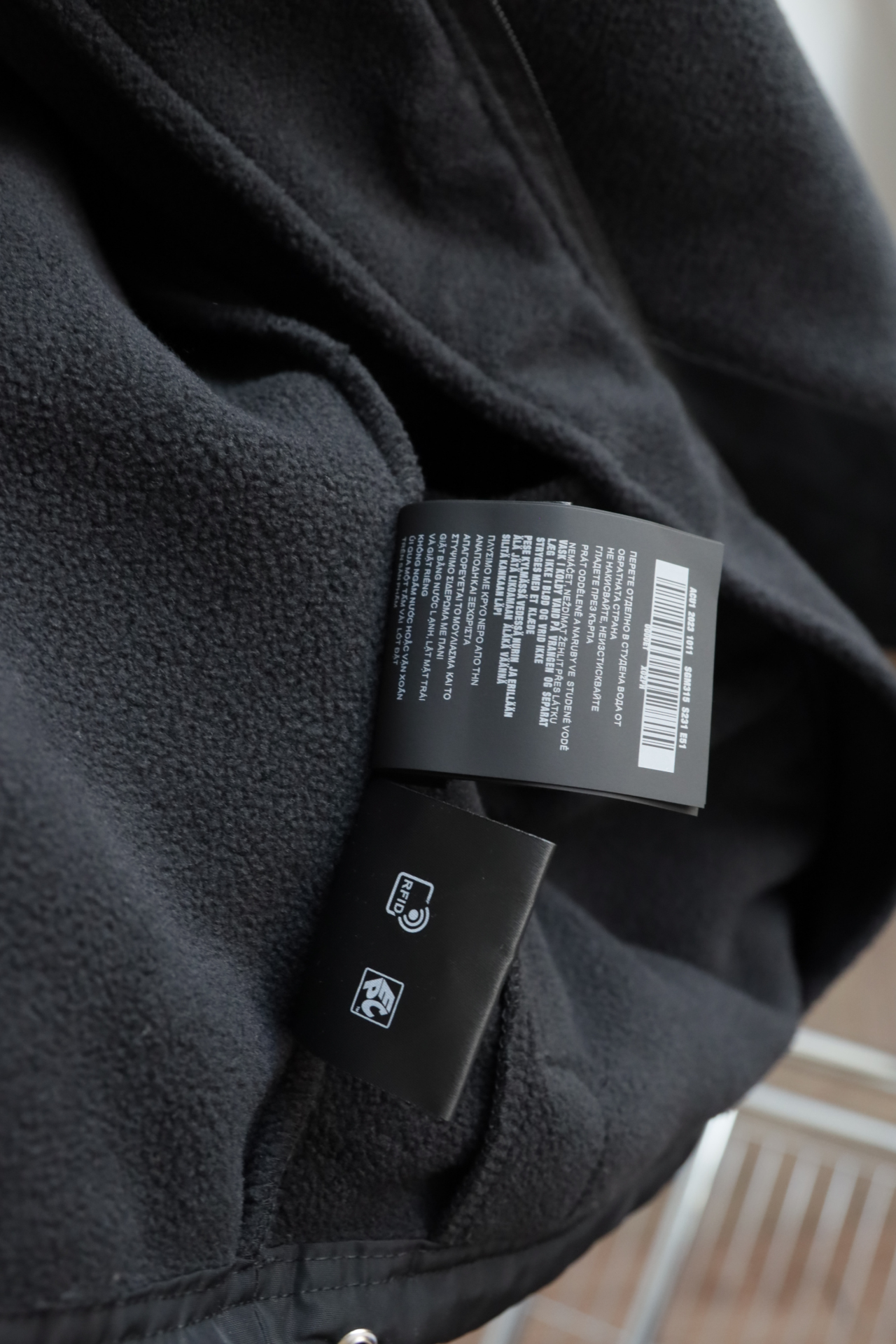 上下尼龙拼接摇粒绒设计,很有亮点,胸口铭牌LOGO点缀