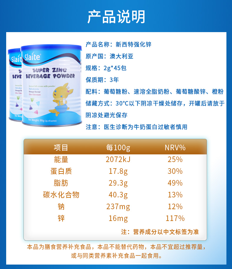 新西特slaite澳洲进口强化锌宝宝补锌葡萄糖酸锌儿童孕妇3g*45袋