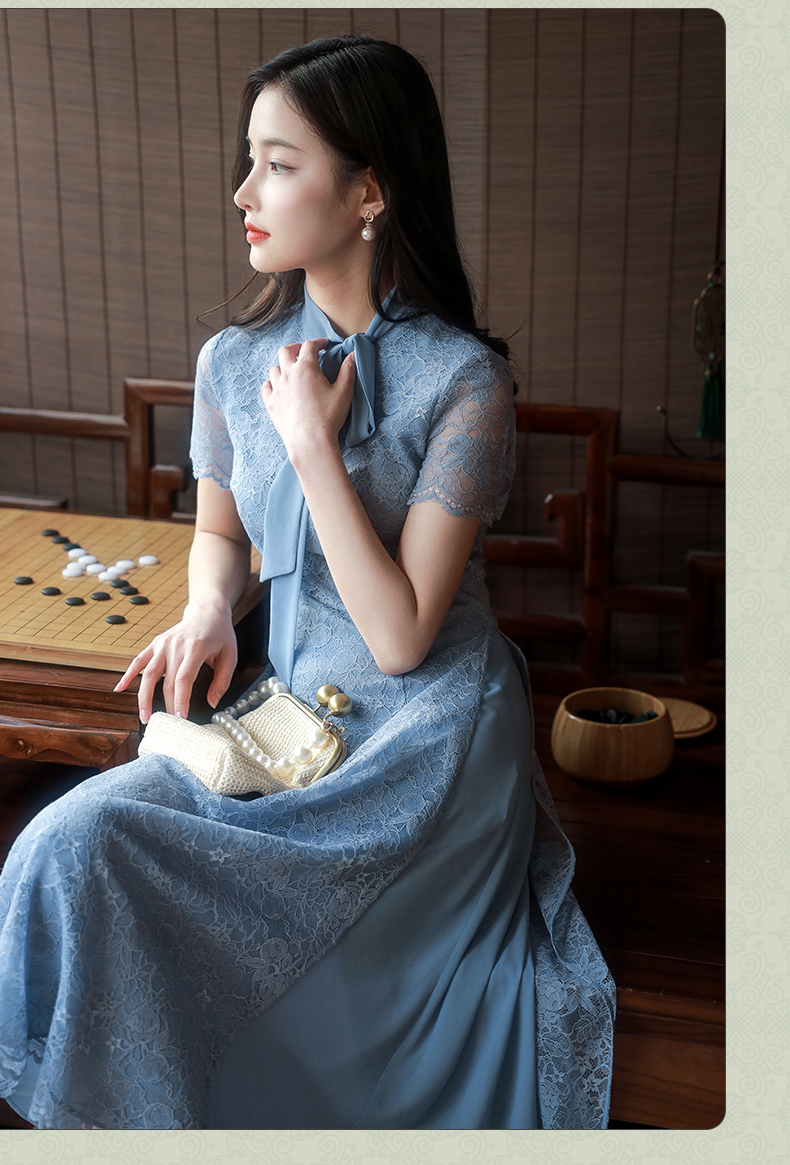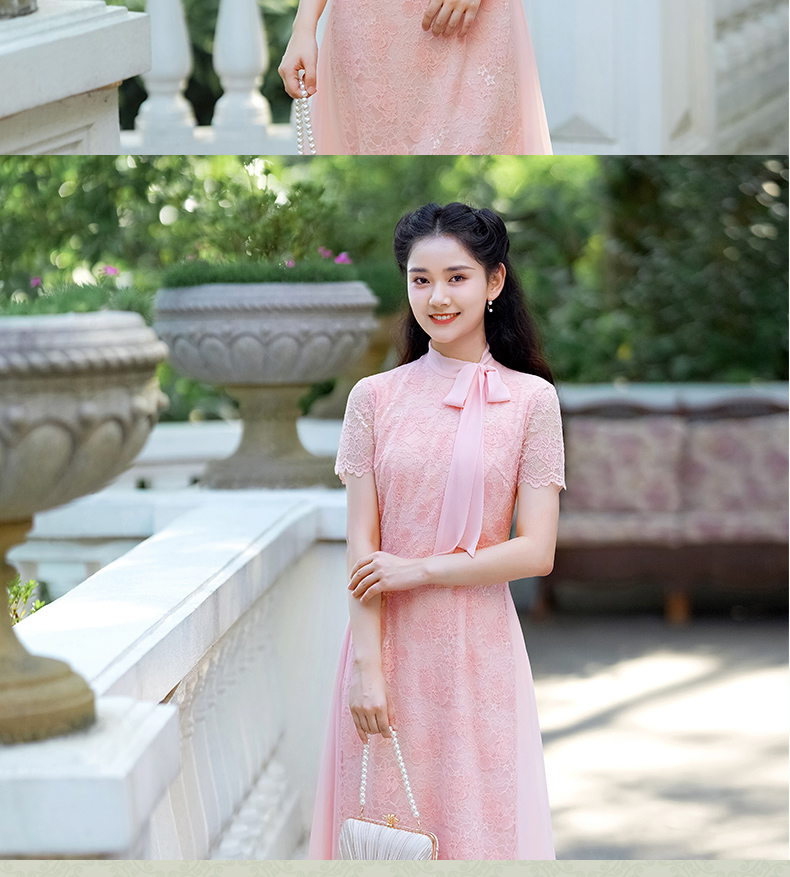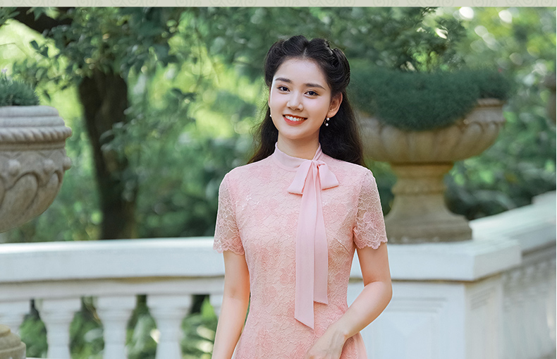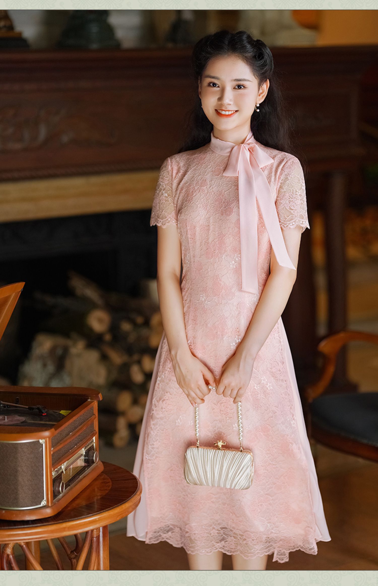 逸红颜2025新款冬朱粉加厚雪尼尔绒翻领立体蝴蝶奥黛式改良旗袍裙