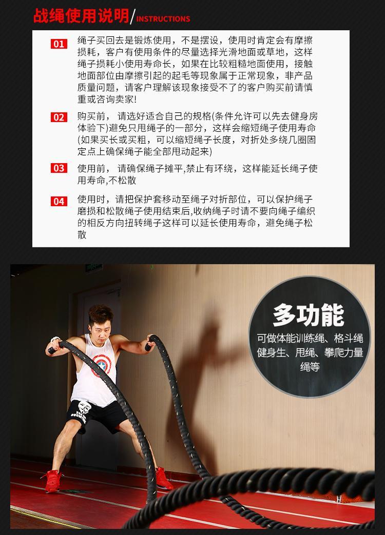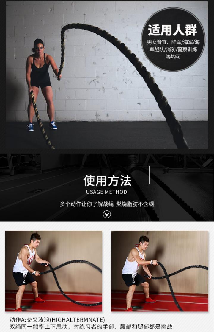 战绳健身战斗绳甩绳家用体能训练力量绳健身房臂力绳加重拉力绳