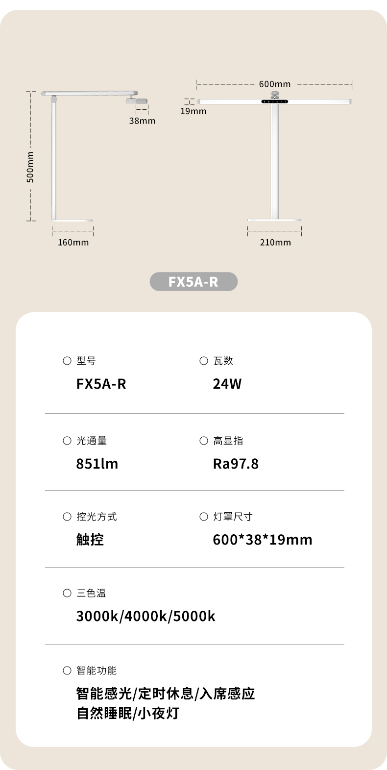 【适合1.2-1.4米桌面】孩视宝护眼学习台灯FX5A-R