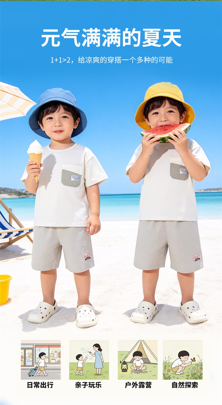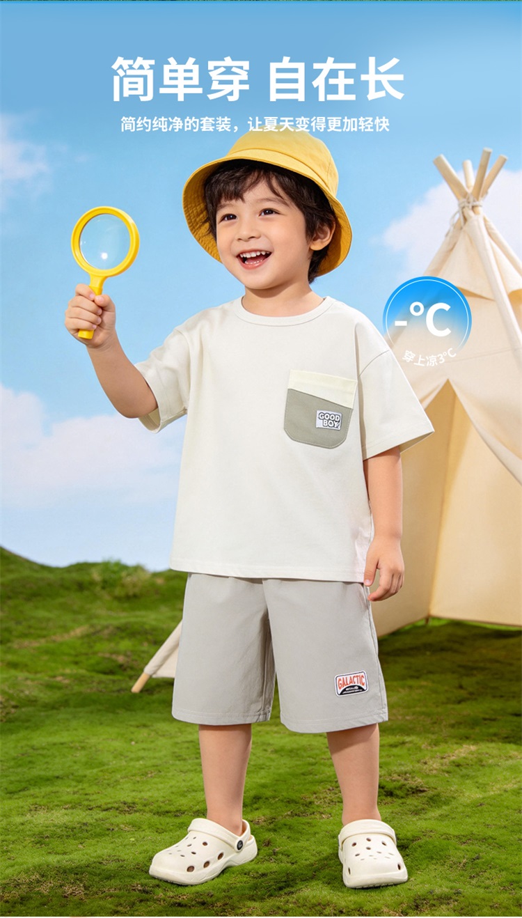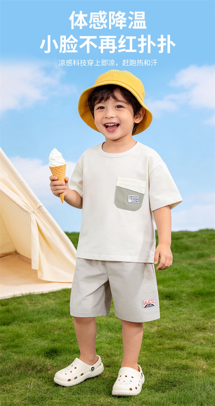 贝贝怡夏季冰感男童短袖套装ZB2FT001