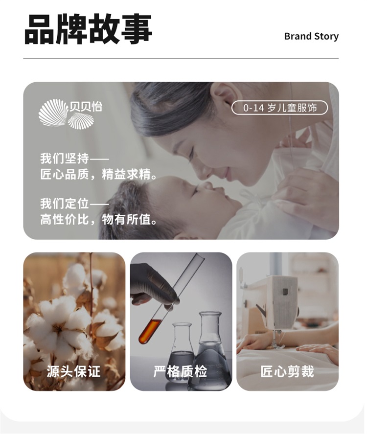 - 贝贝怡专注0-6岁婴幼儿服饰,坚持安全、柔软、舒适的产品理念,为千万中国家庭提供超高品质、安全可靠的婴幼儿服饰产品,妈妈放心,宝宝开心!