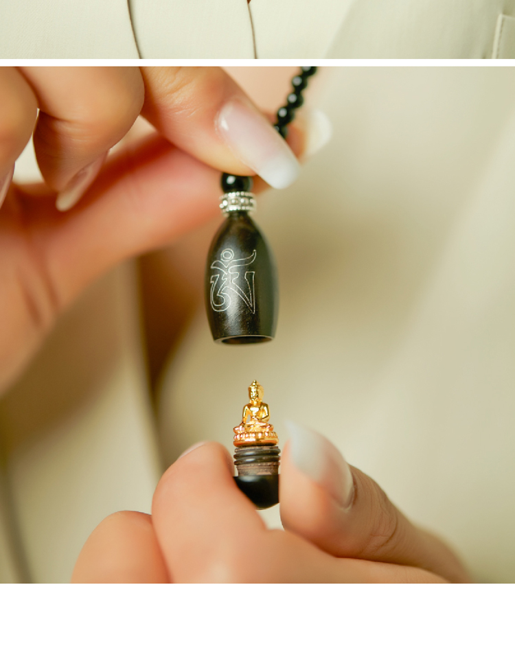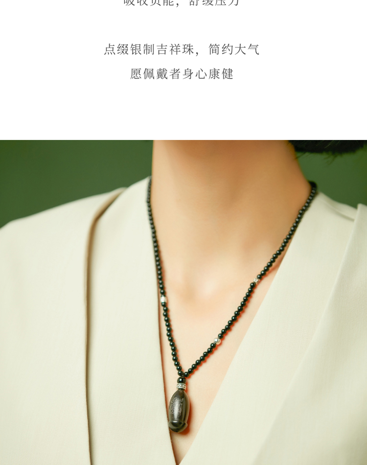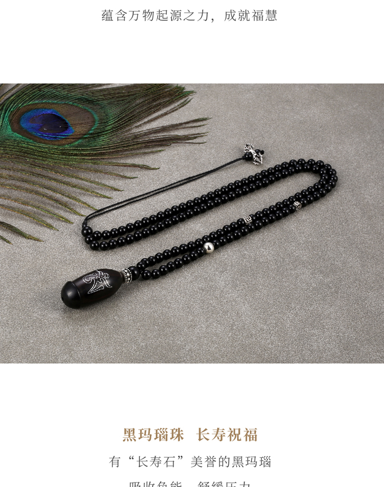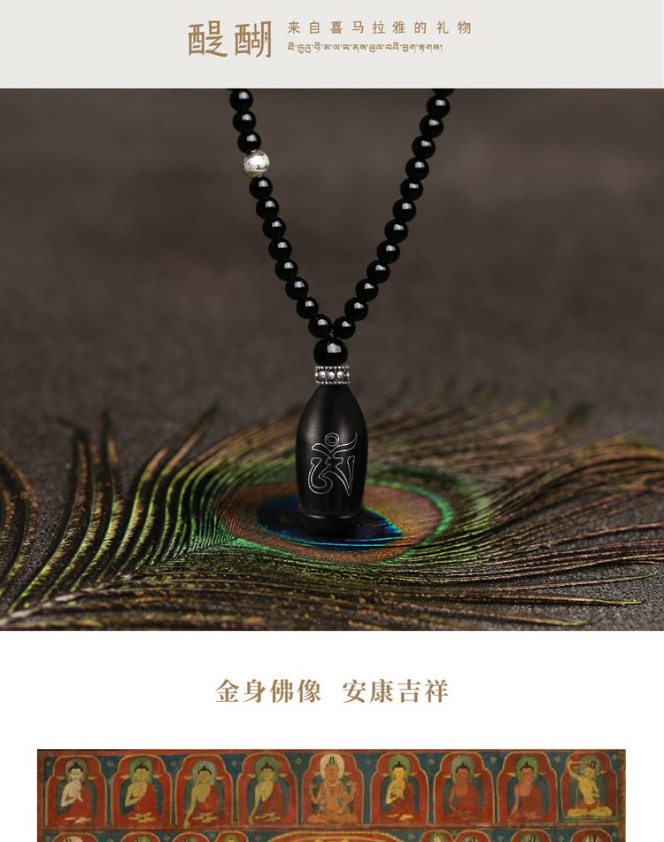 药师佛黑玛瑙项链 车挂 紫光檀镶嵌种子字 925银配件 西藏祝福礼物