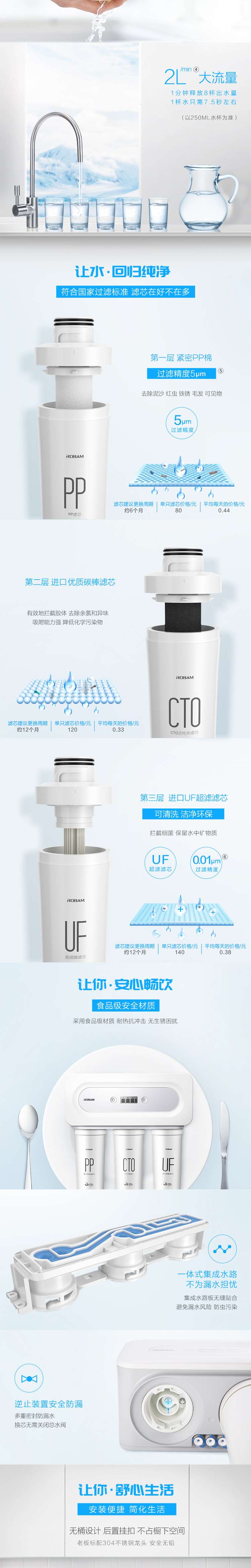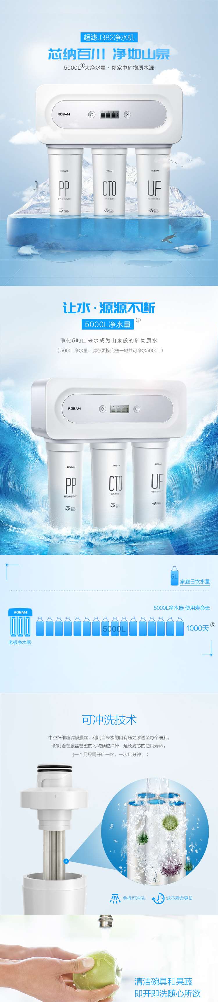 老板J382净水器滤芯净水机家用大流量超滤pp棉过滤水机嵌入式厨房