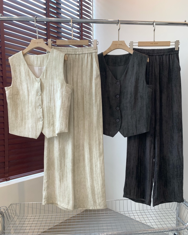 Michael Klein 老钱风天丝亚麻马甲裤子套装 上衣7560裤子7561(下单3-7天发货)