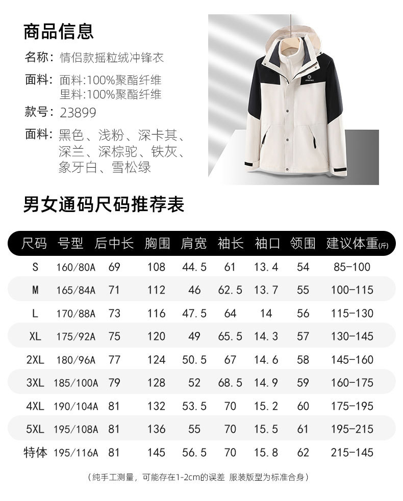 积能三合一冲保暖锋衣男女可拆卸内胆拼色防风加厚跑步户外服
