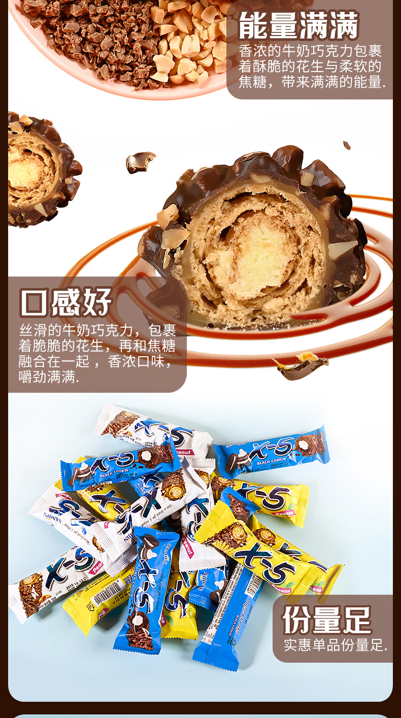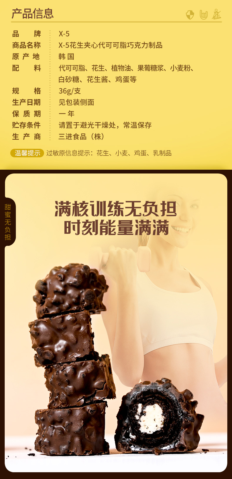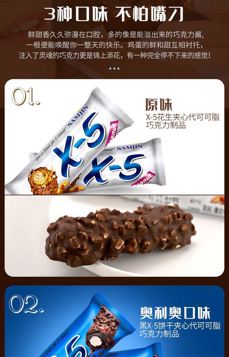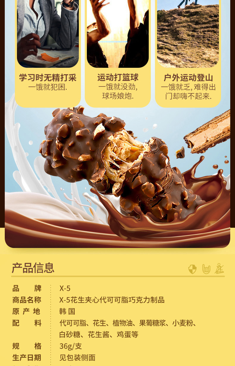 韩国进口三进x5巧克力棒花生坚果能量棒36g花生原味