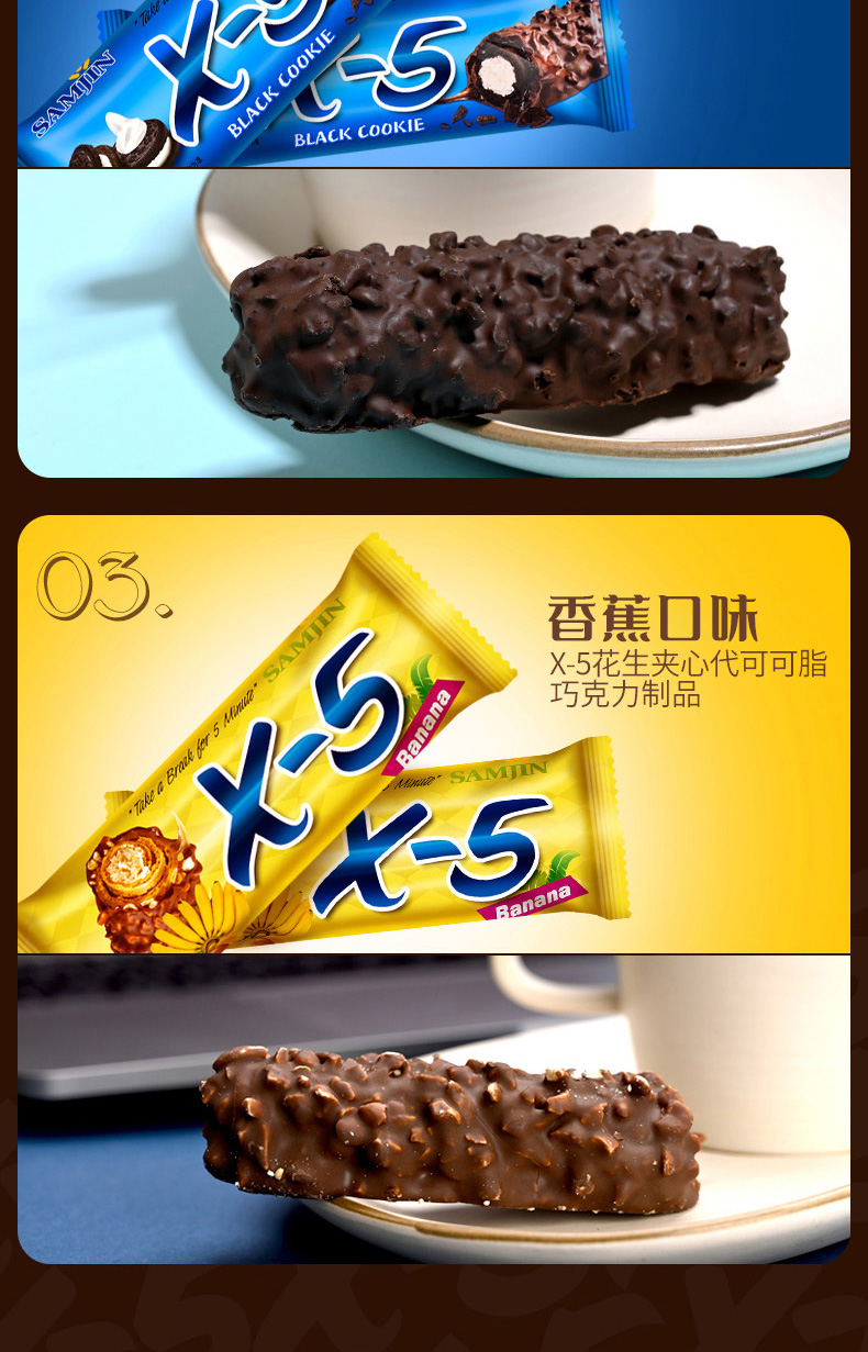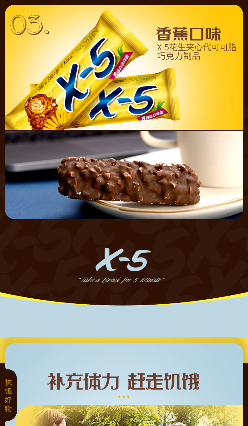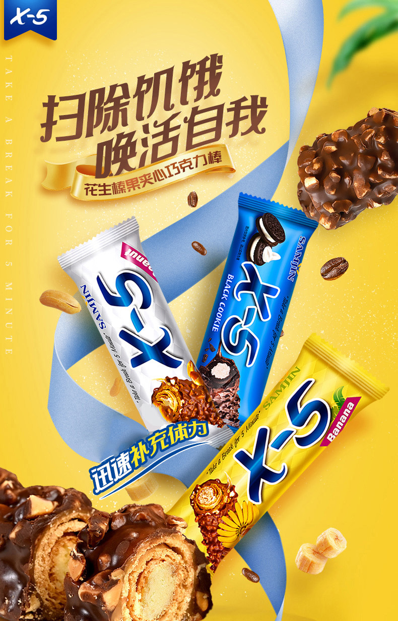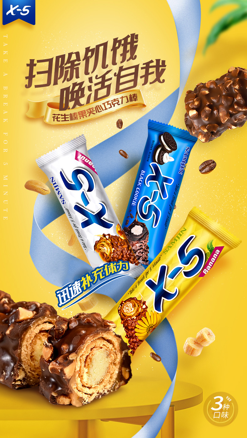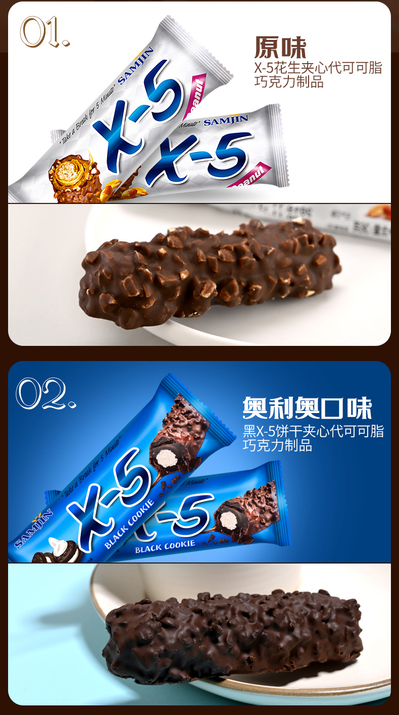 韩国进口三进x5巧克力棒花生坚果能量棒36g花生原味