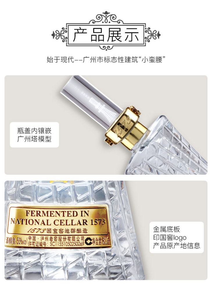 【泸州老窖形象店】 53度国窖1573酒-广州塔 600ml浓香型白酒