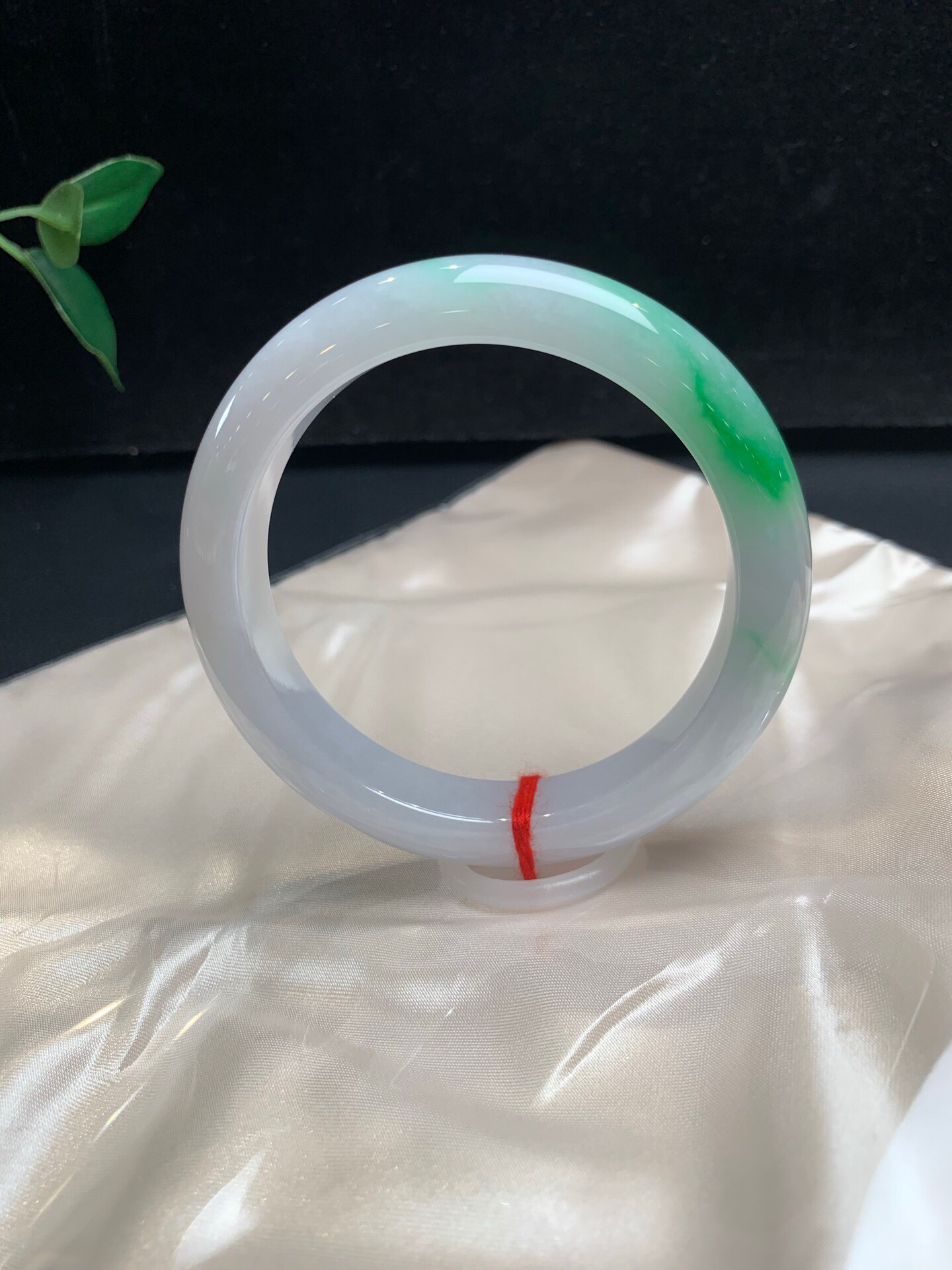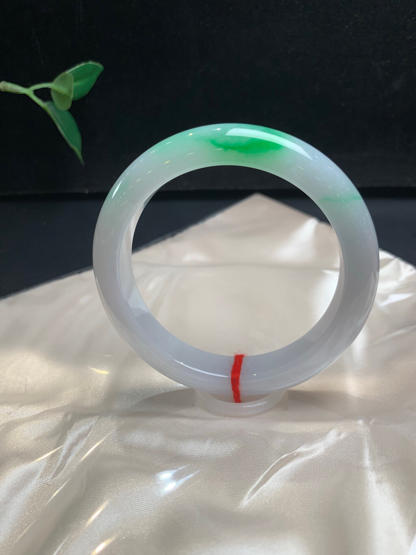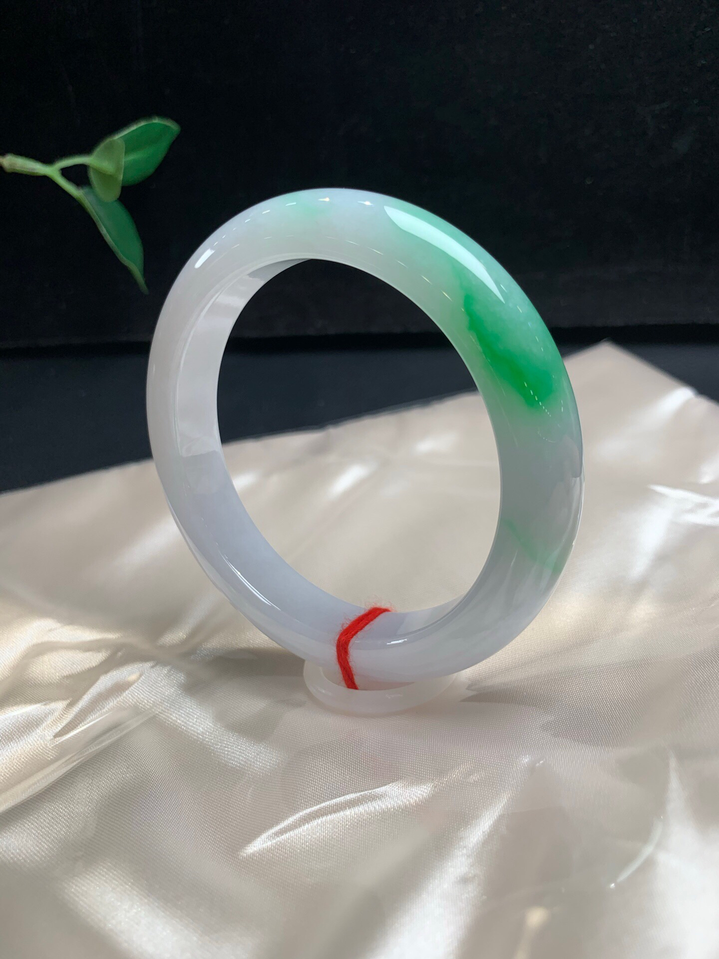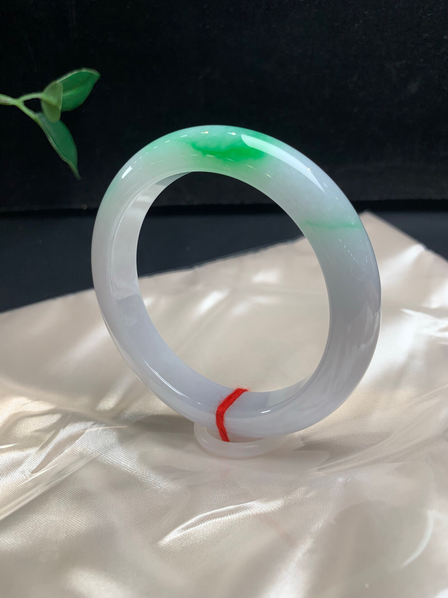 620668,60.8飘阳绿大圈手镯,清新白底青、干净底子细腻,飘阳绿