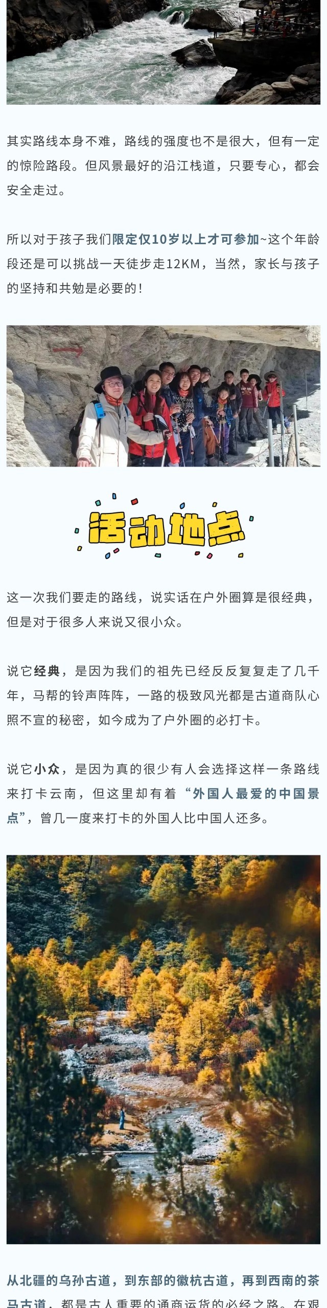活动期间将为每位游客购买保险,请报名时准确填写“参加活动人员的真实姓名及身份证号”,如不填写或填写错误则视为放弃购买保险,行程中出现的风险和损失将由您个人承担。