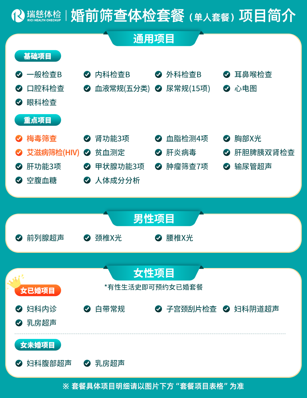 | 套餐名称:婚前筛查体检套餐 | |||||