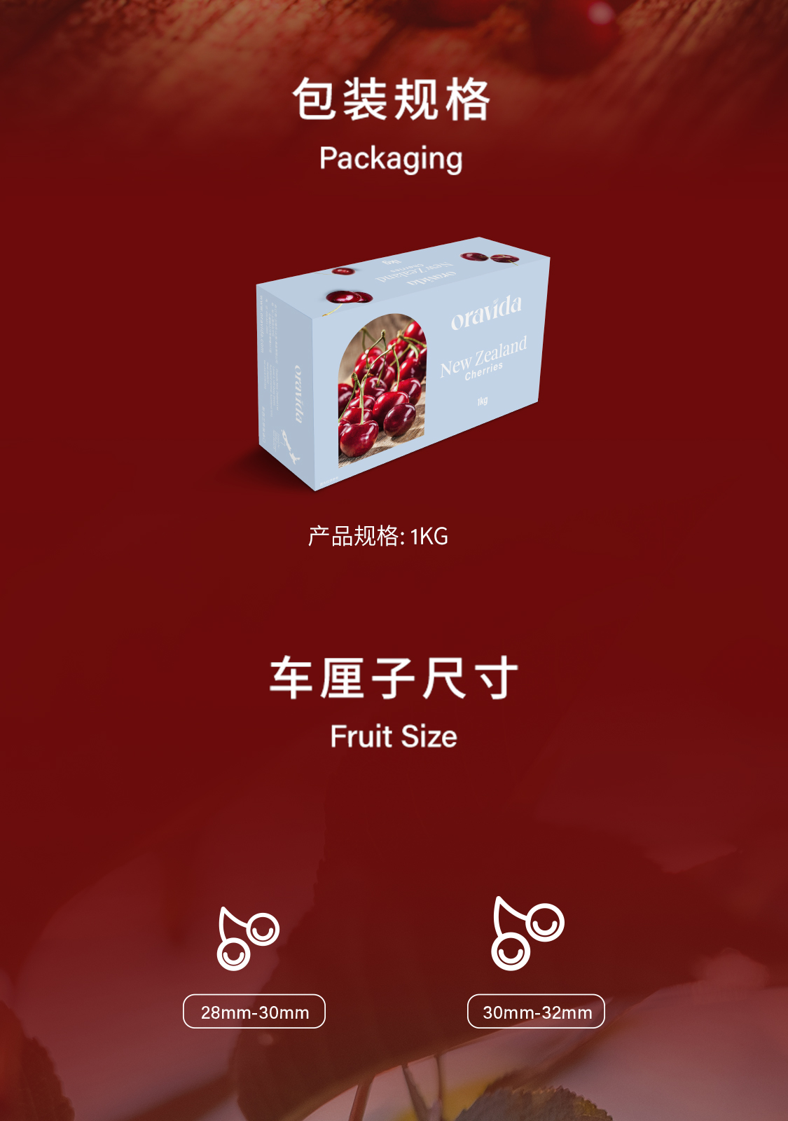 【预售1箱】oravida新西兰进口车厘子礼盒装28mm *1kg