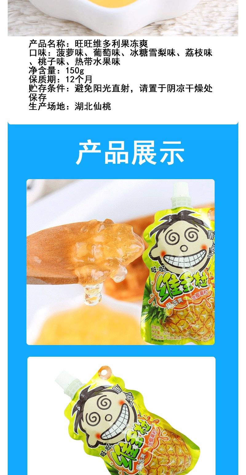 旺旺维多粒果冻爽150g/袋粒粒桃味 吸吸冻果肉水果味