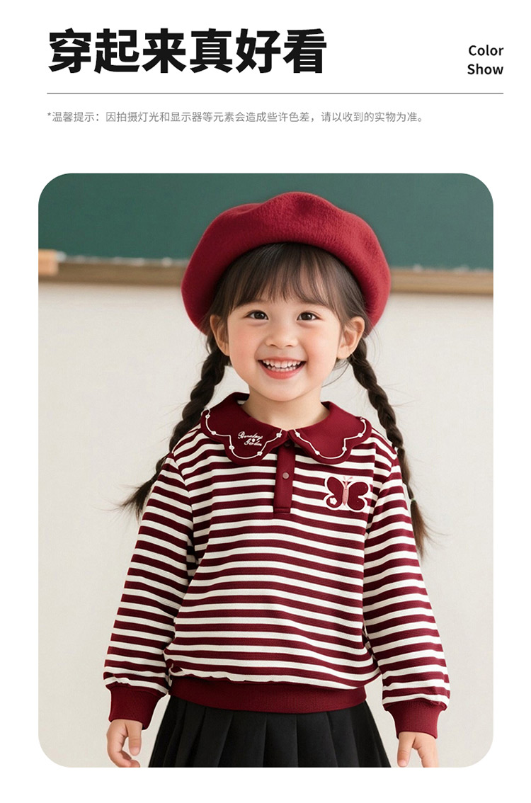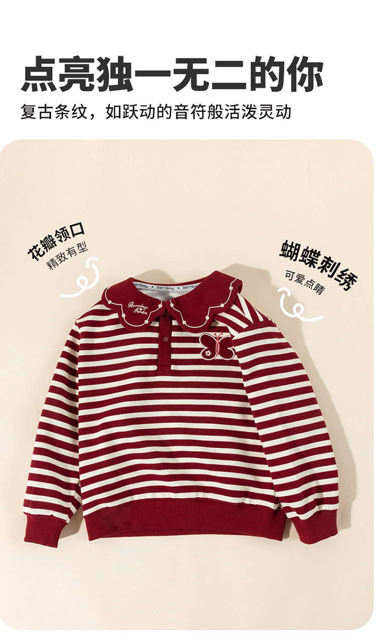贝贝怡春秋新款女童套头上衣软糯百搭甜美休闲卫衣ZB3ES023