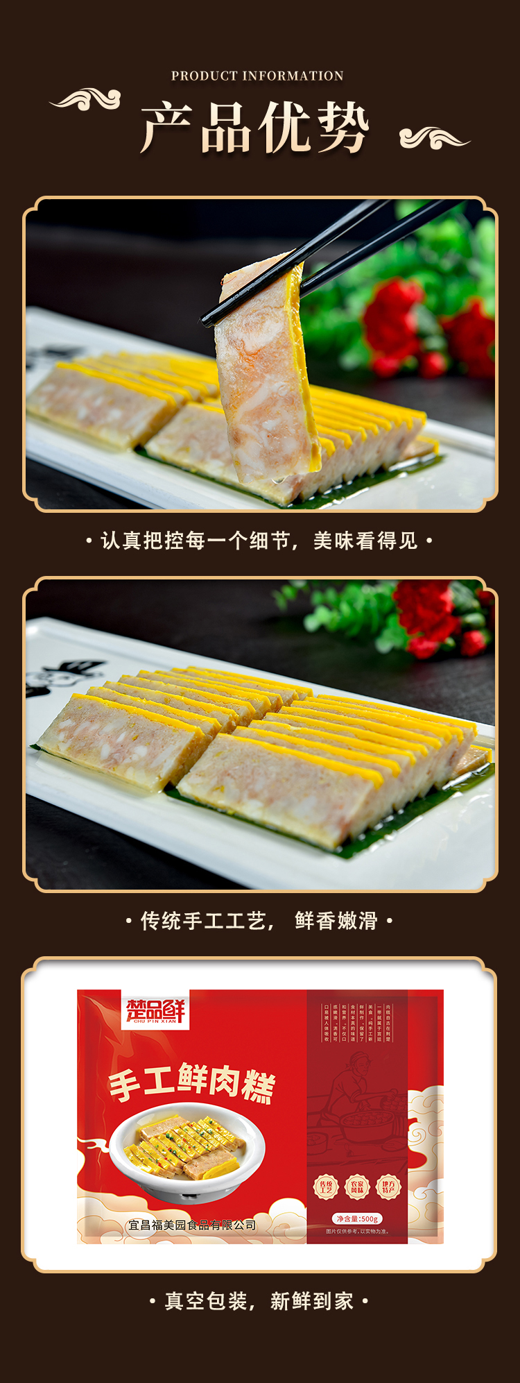 【宜昌助农馆】楚品鲜 当阳手工鲜肉糕 地道传统美味年货菜肴500g*2袋