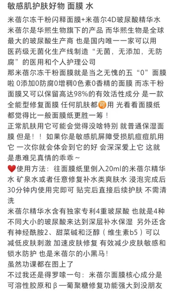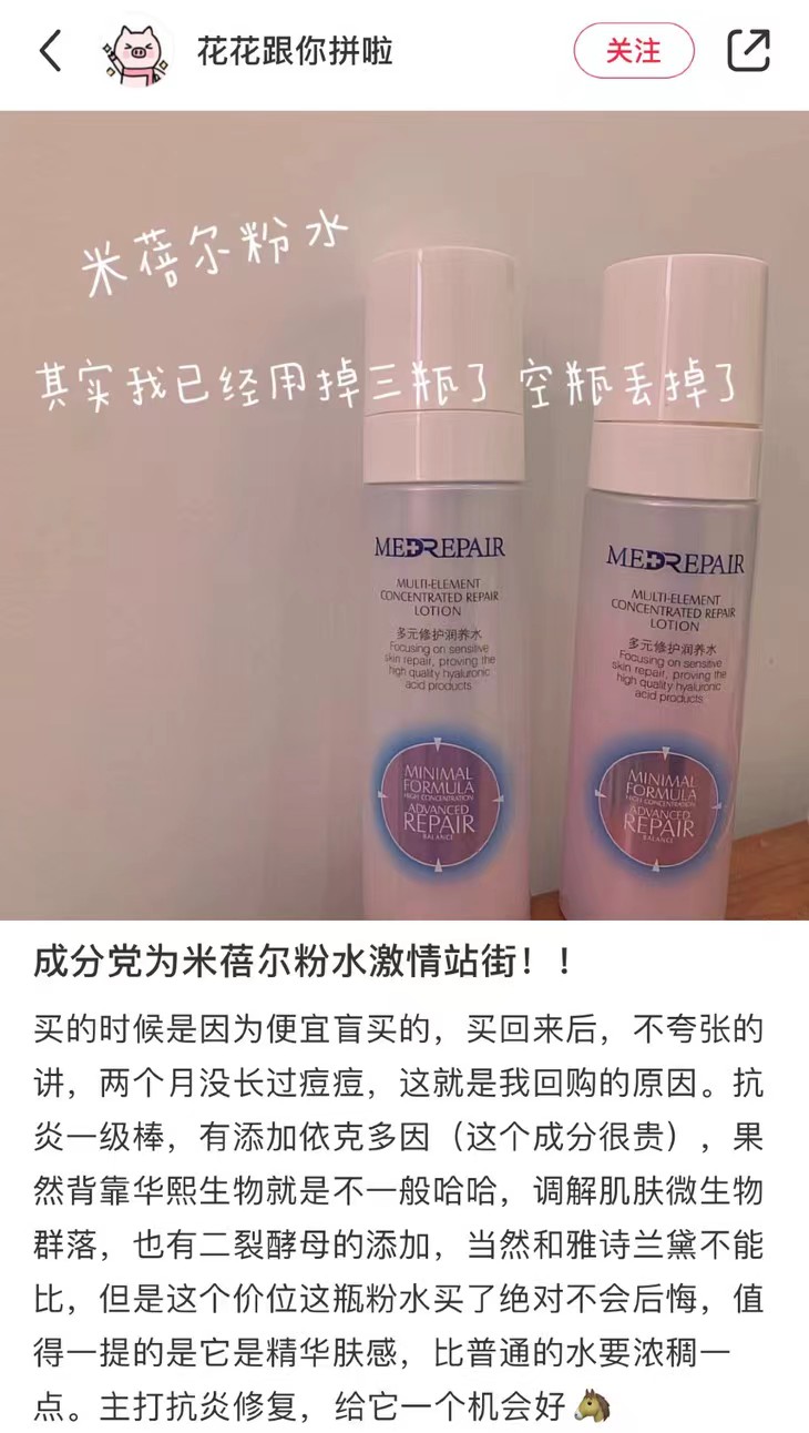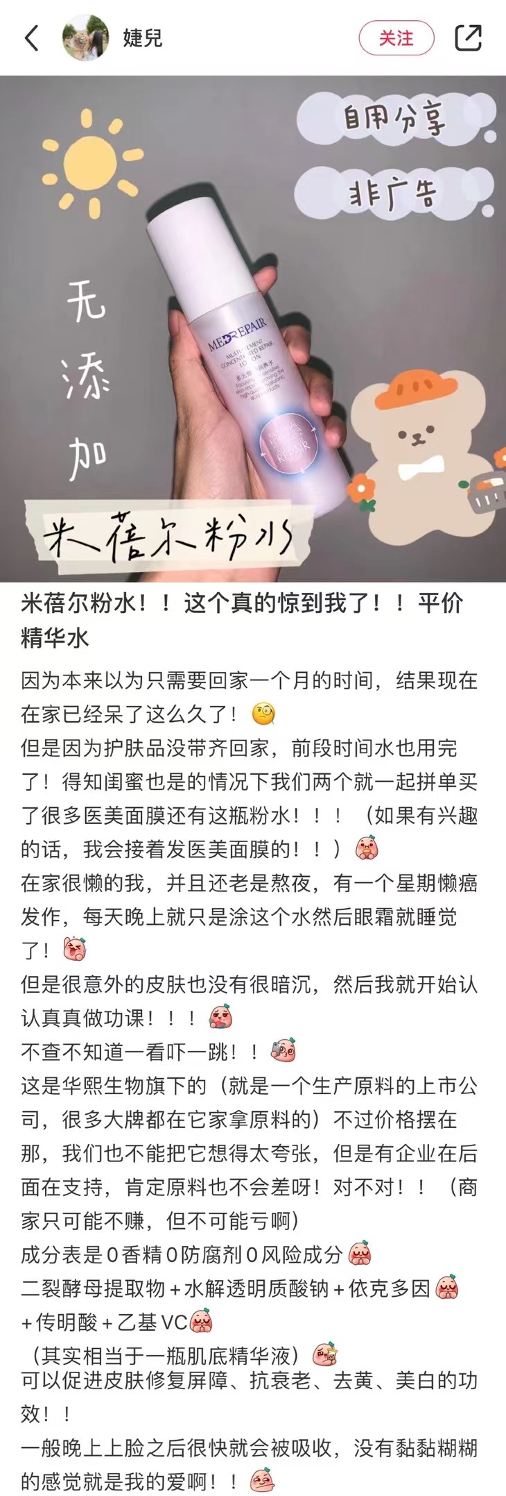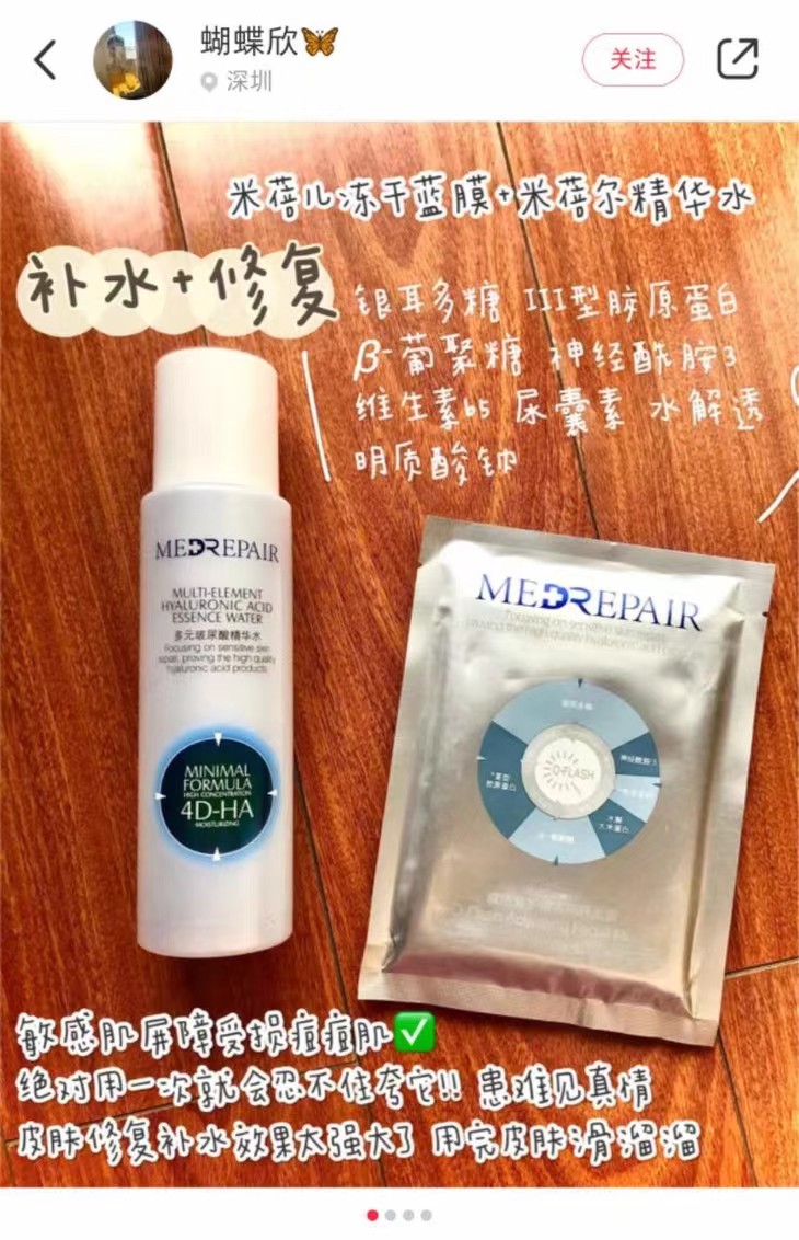 今天上的MedRepair米蓓尔,也是大家呼声比较高的,是华熙生物旗下的,就是和润百颜同门,其实我早早就知道了,但当时没太有名,用户反馈也很少,就有点懒得上架安利。最近是实在太多人想要了,我就把他家我觉得很好用的两款上了,一个是固态闪释冻干面膜,超级红的了,还有一个是多元玻尿酸精华水,可以单独做水膜,也可以搭配冻干面膜一起用。