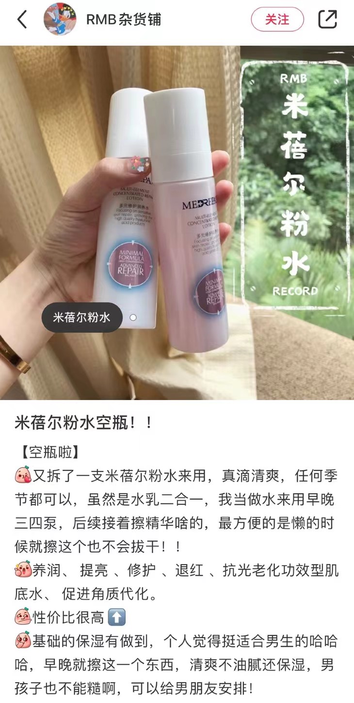我知道米蓓尔有粉水,但之前试用下来觉得多元精华水无论从性价比还是使用感来说都略胜一筹,就只上了小蓝(多元精华水大白瓶)。结果有老粉在我安利下用了小蓝之后就想要小粉,安排安排!