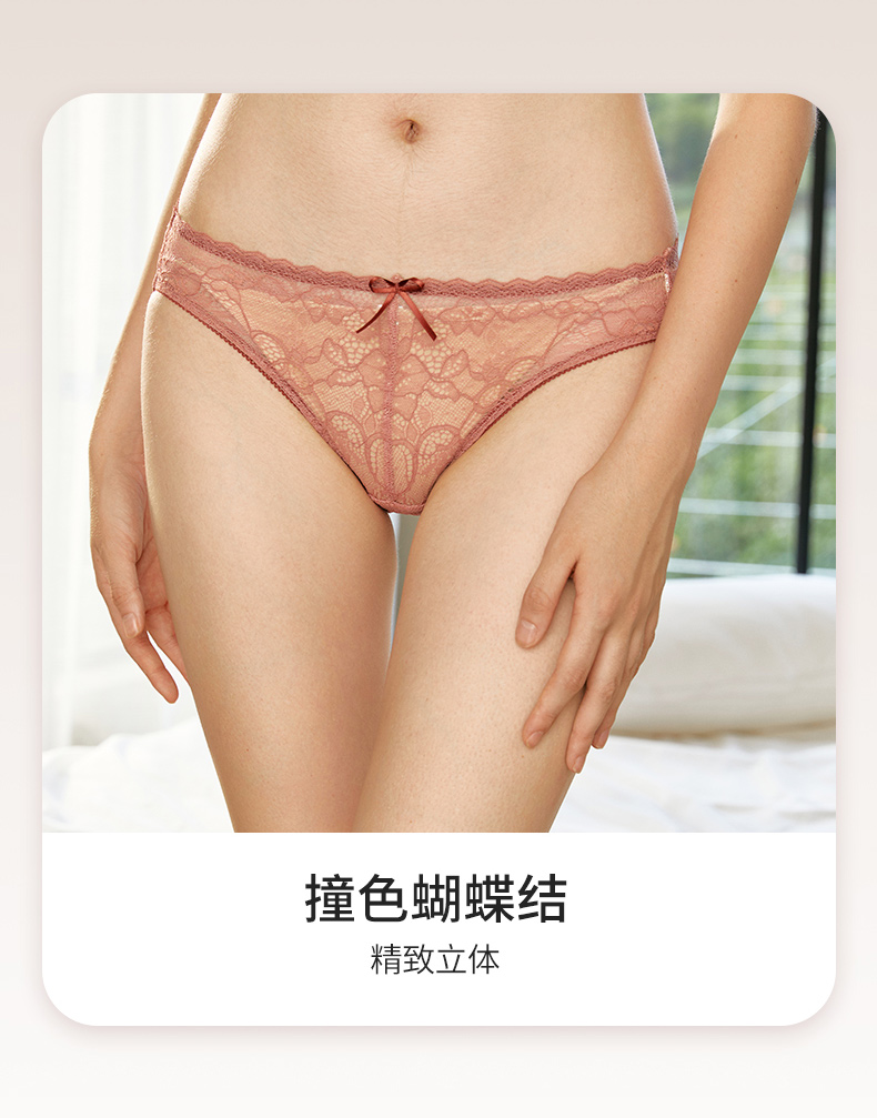 金三塔桑蚕丝裆部贴肤女低腰三角裤蝴蝶结蕾丝内裤性感超薄舒适透气(私密物品不支持退换) NZFAA203