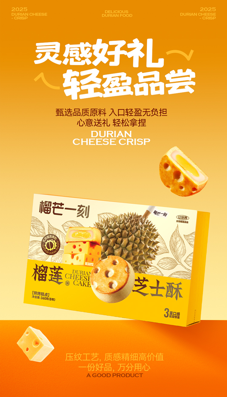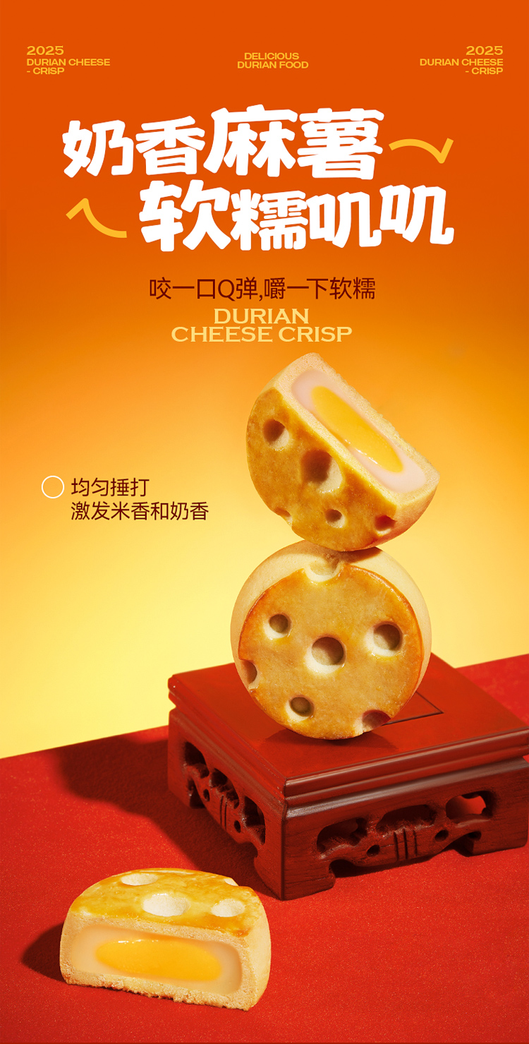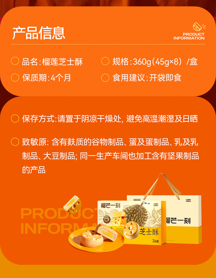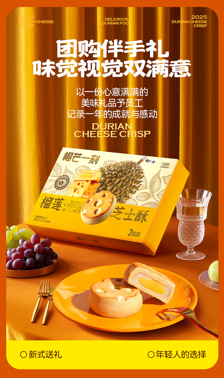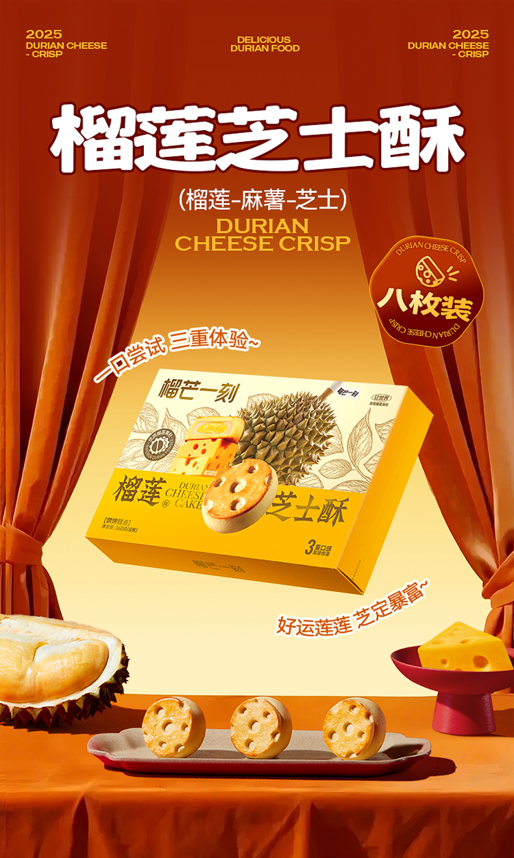 【榴莲芝士酥】360克(45g*8枚)|酥脆饼皮+Q弹麻薯+香醇芝士内馅