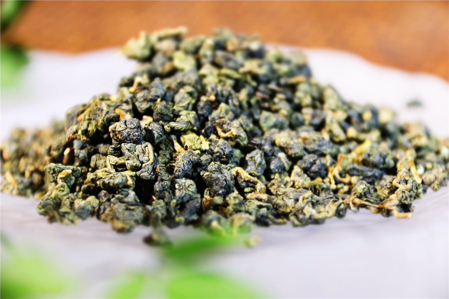 形—外观紧实半球状,色泽墨绿,叶片匀整,一芽二三叶含梗