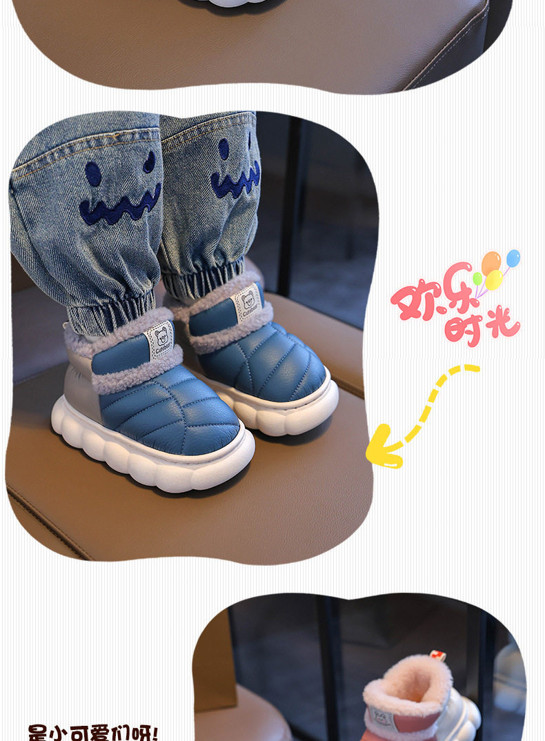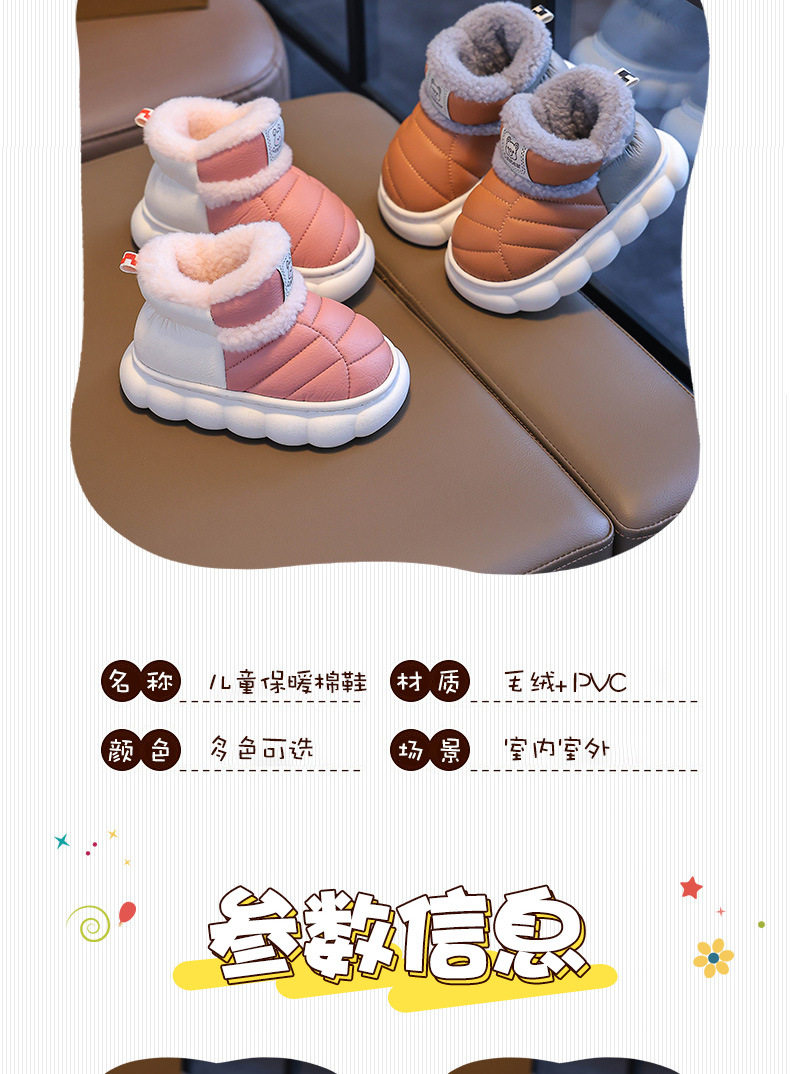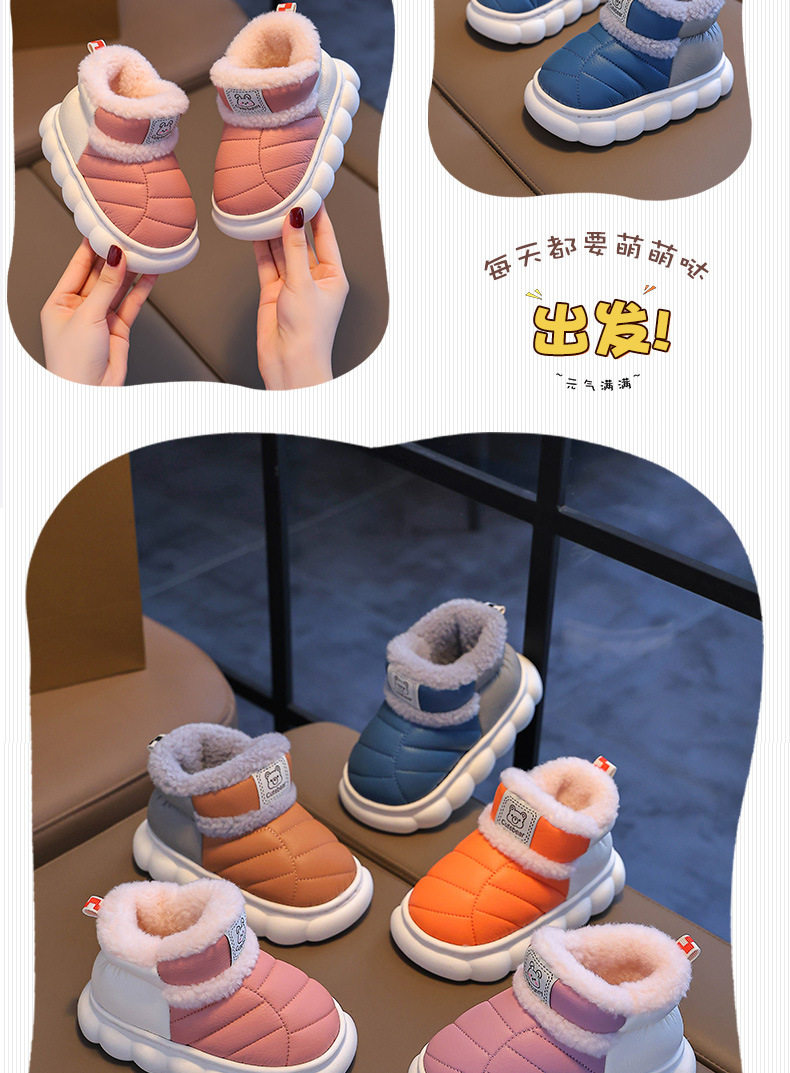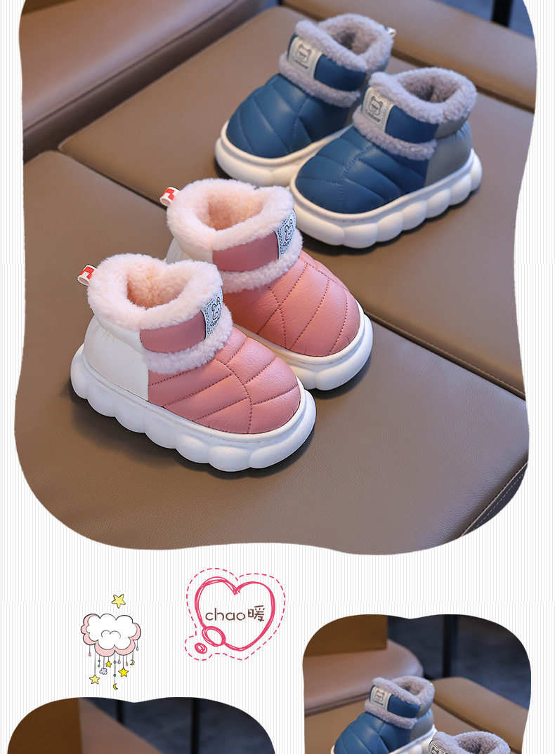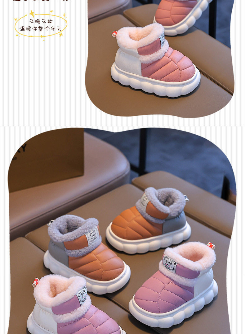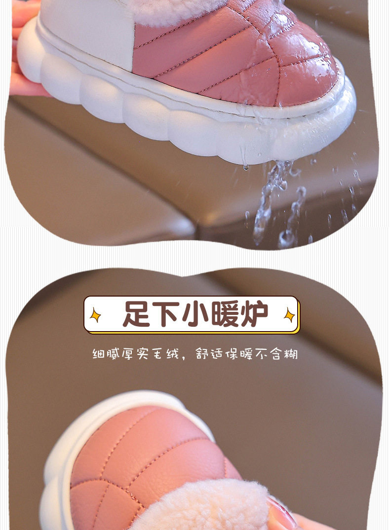 2024新款冬季儿童包跟棉鞋男女童保暖加绒毛毛PU防水中小童宝宝鞋