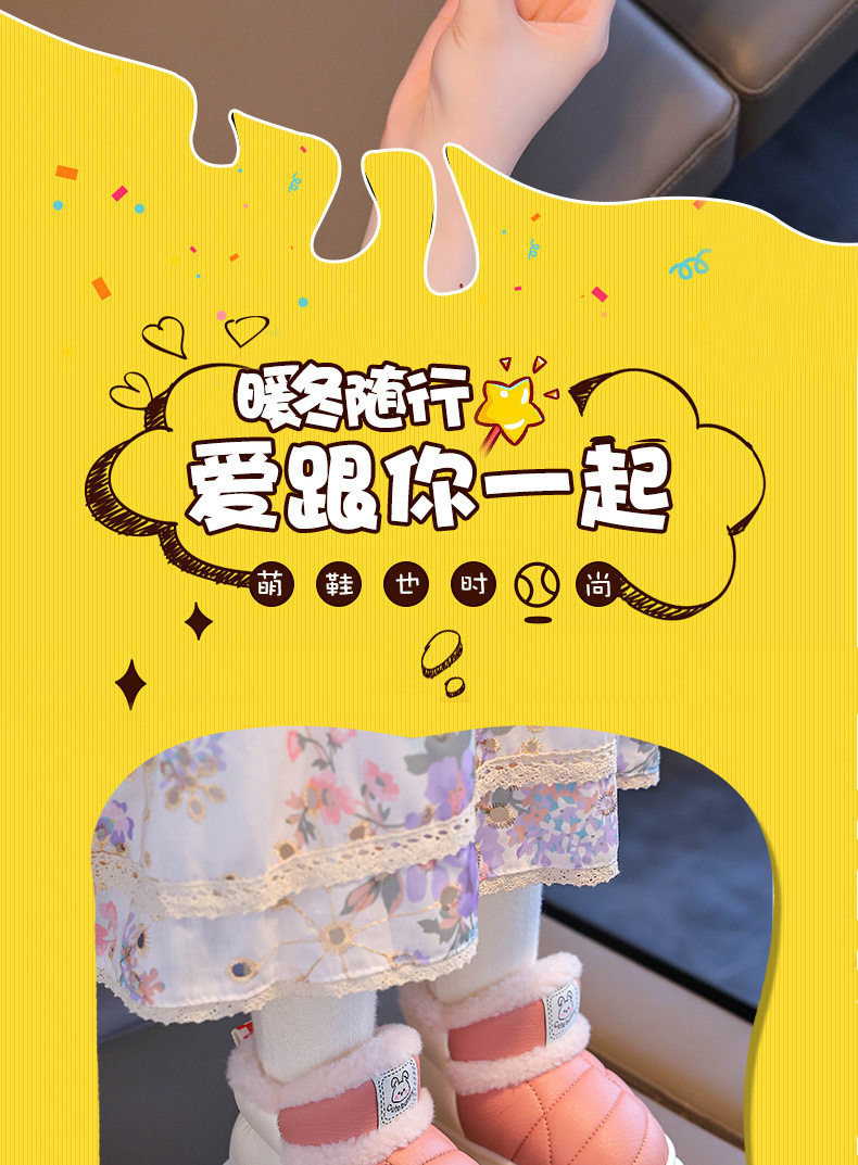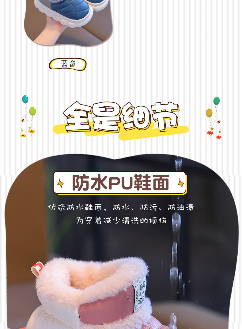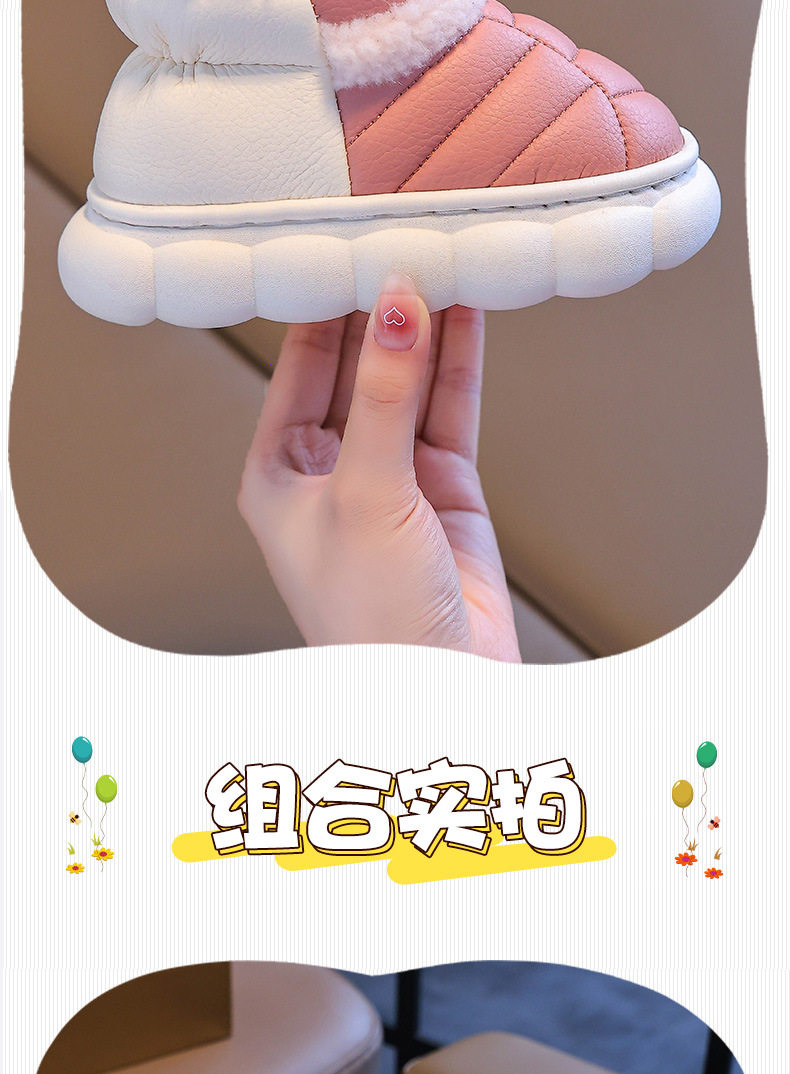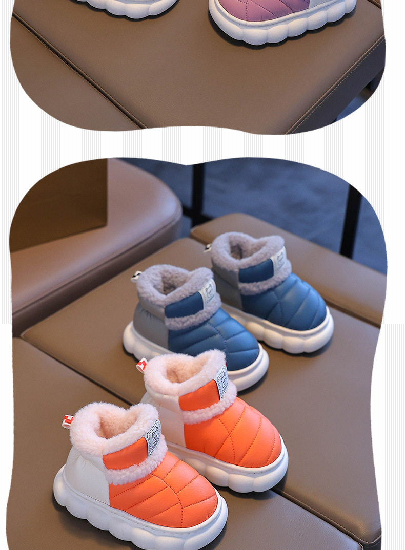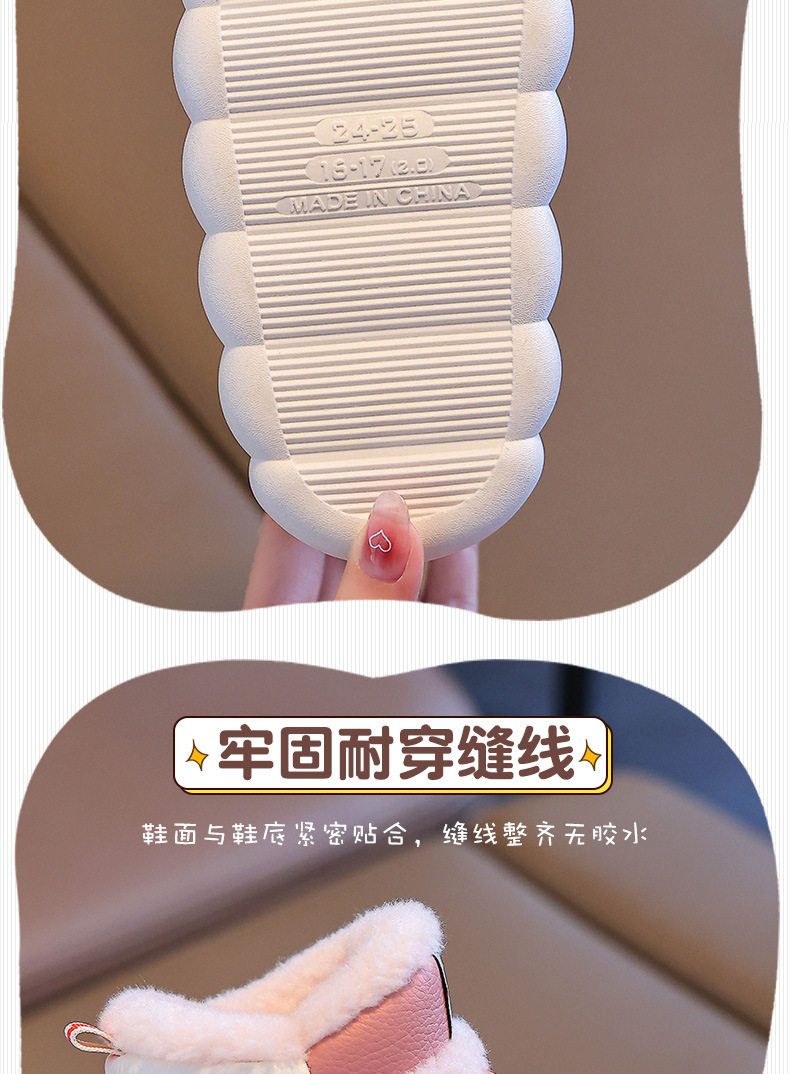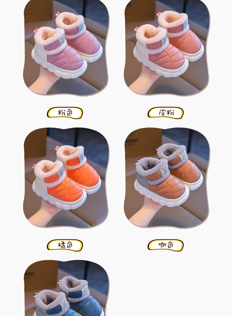 2024新款冬季儿童包跟棉鞋男女童保暖加绒毛毛PU防水中小童宝宝鞋