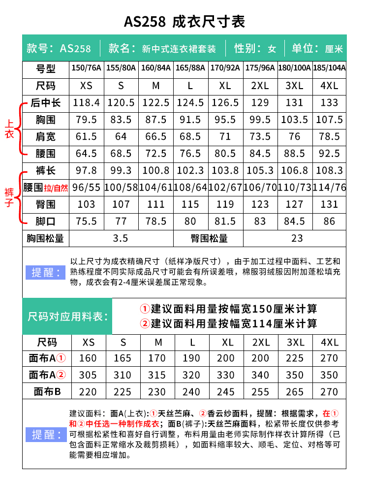 裁缝学苑AS258改良旗袍纸样女装新中式连衣裙国风裤子套装版型