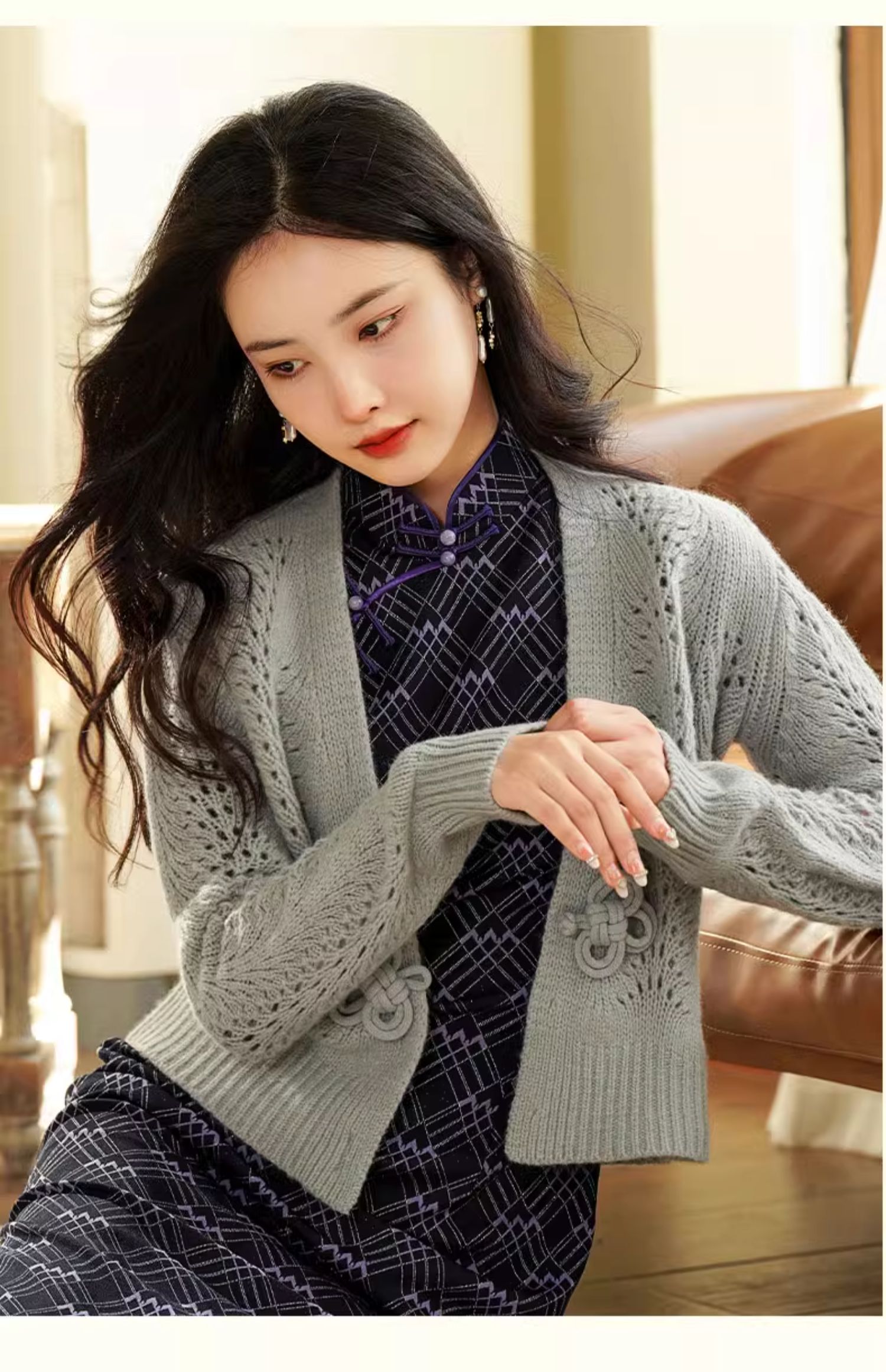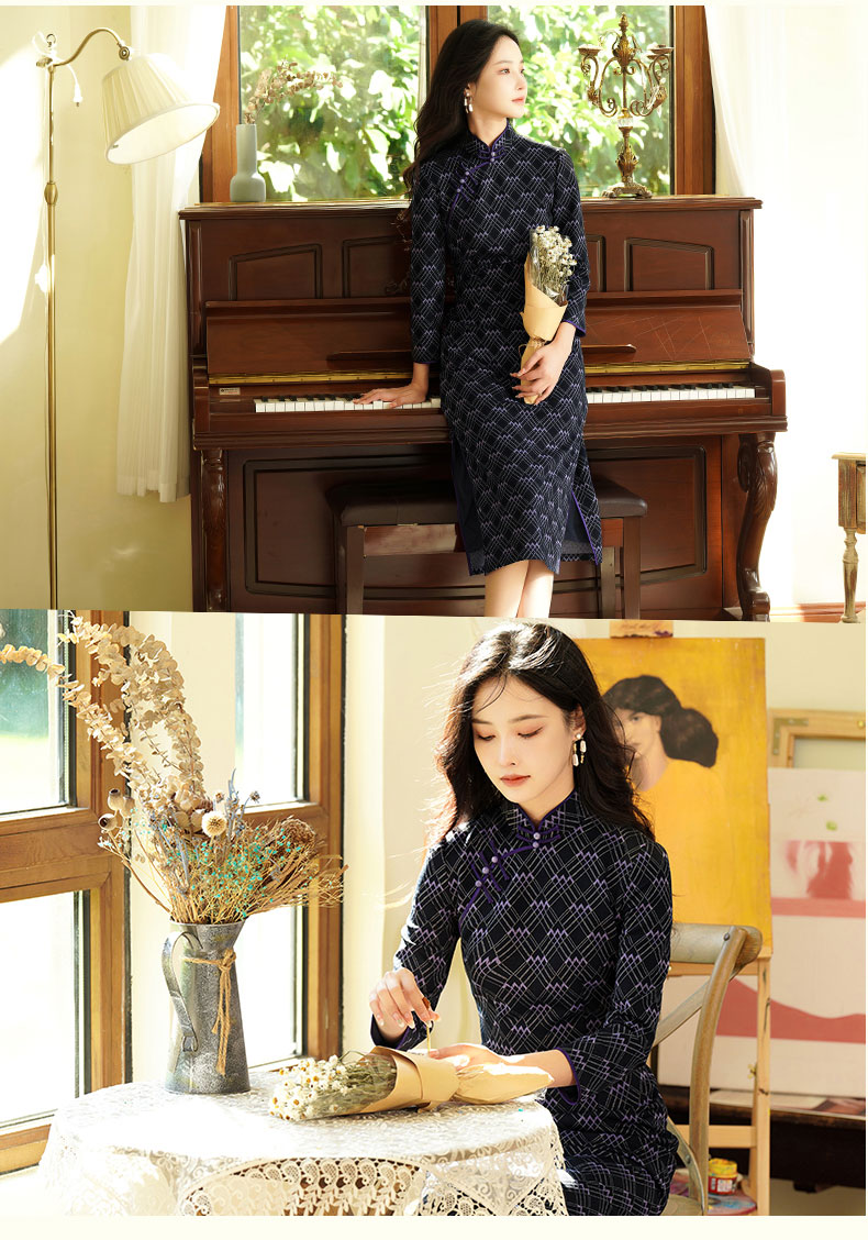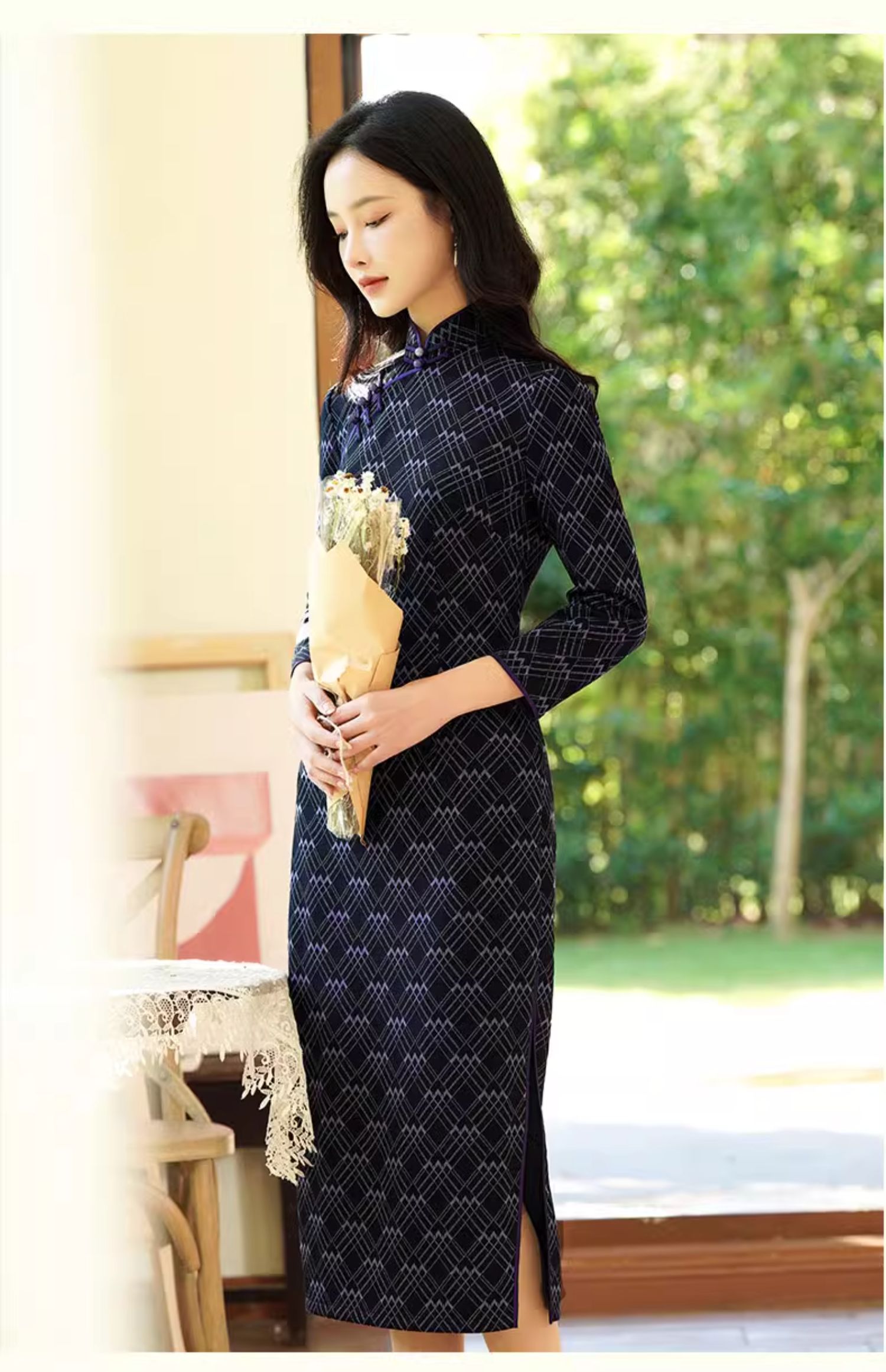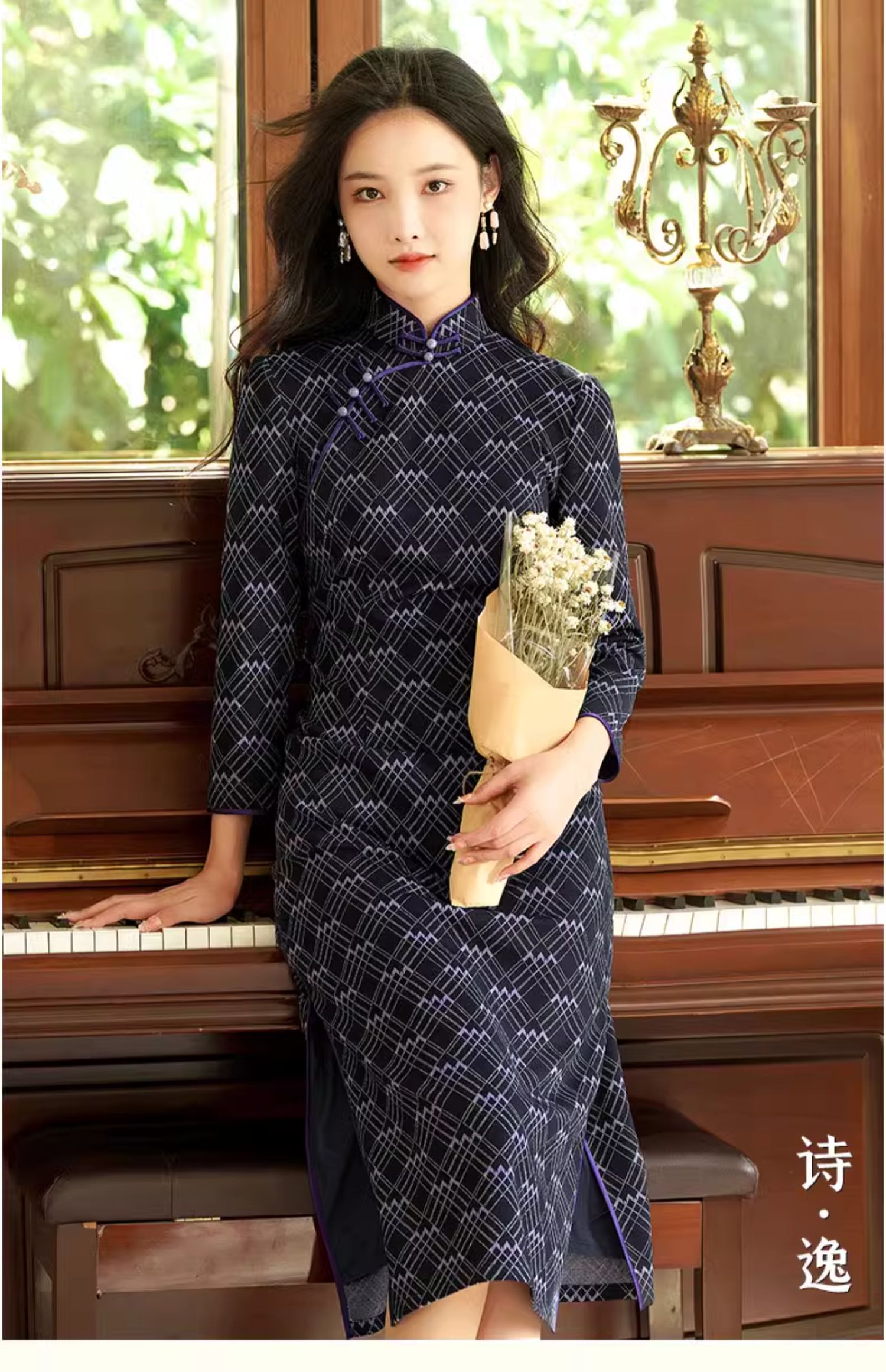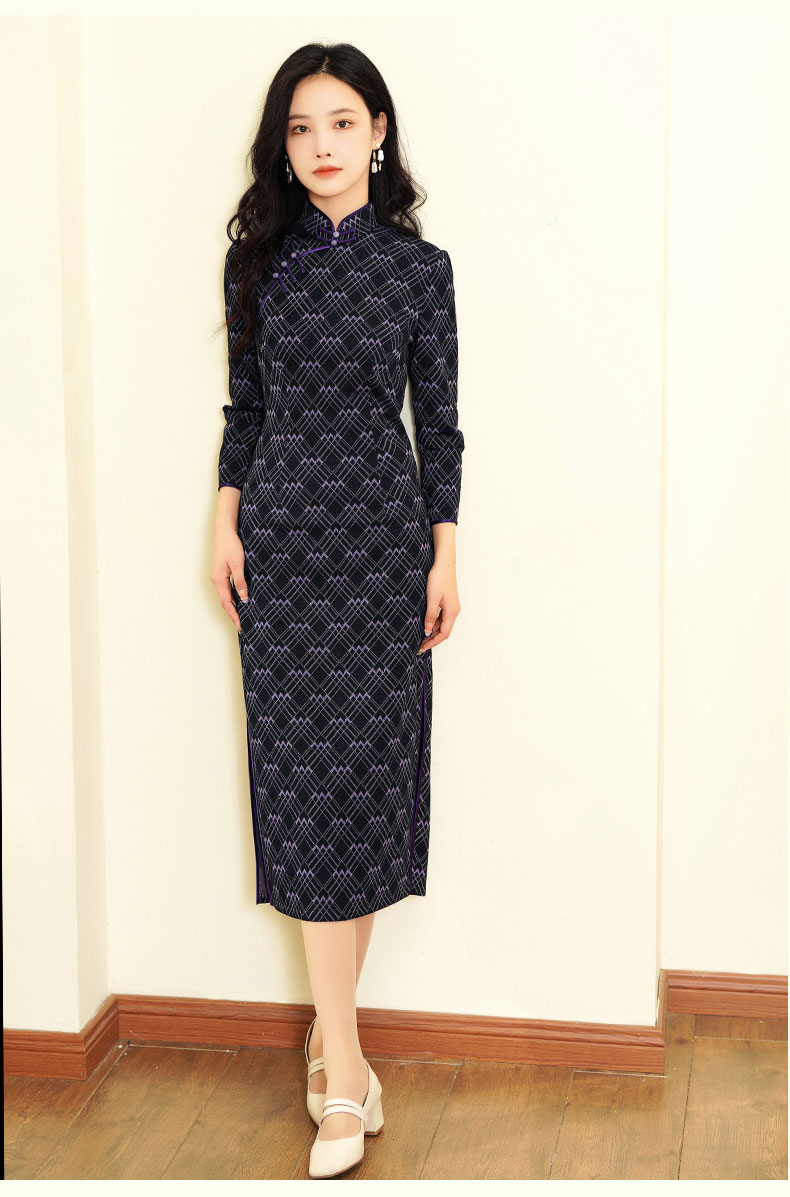 上海逸红颜诗逸2025年冬季新款弹力针织旗袍改良版连衣裙女文艺风