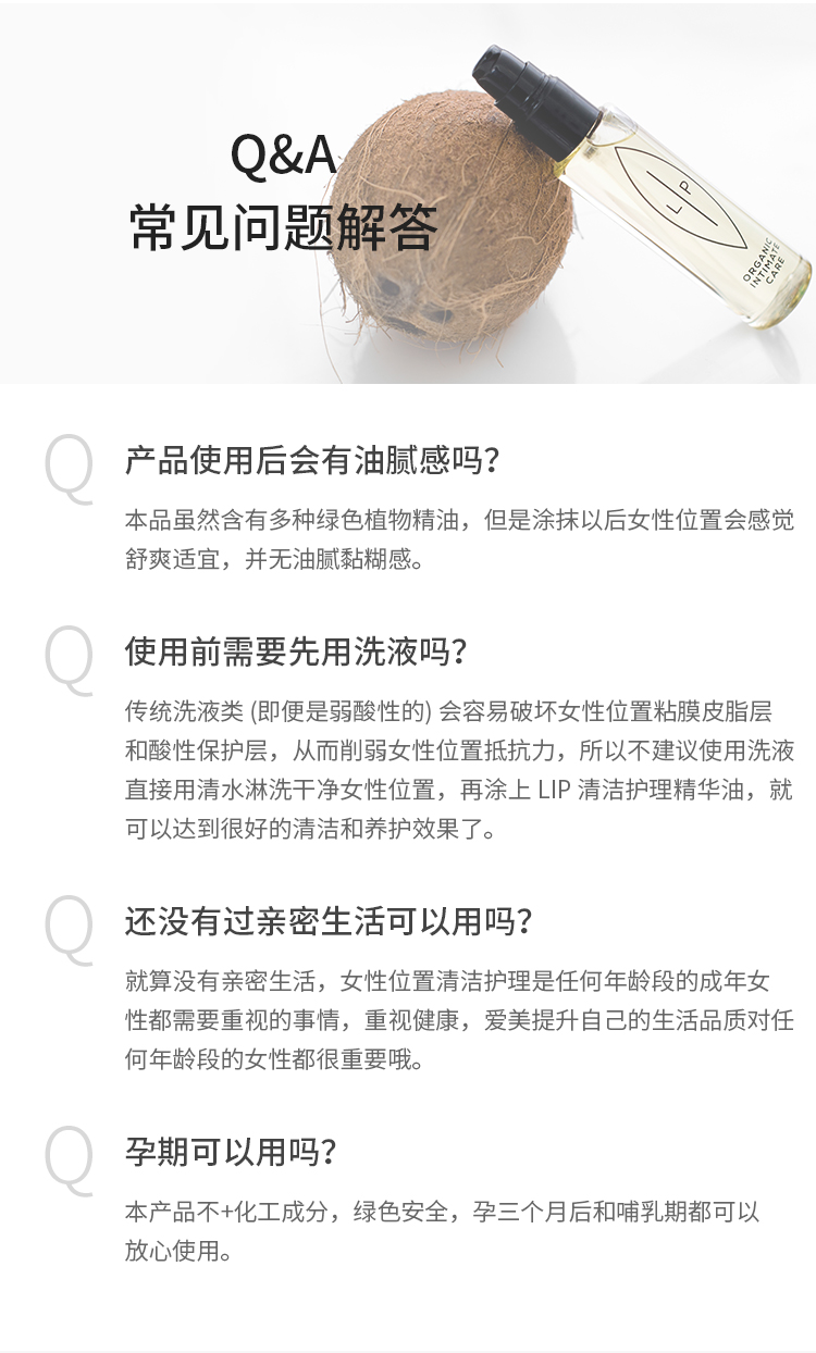 LIP 小白瓶香草椰油女性护理精华液 (补水为主) 75m/瓶