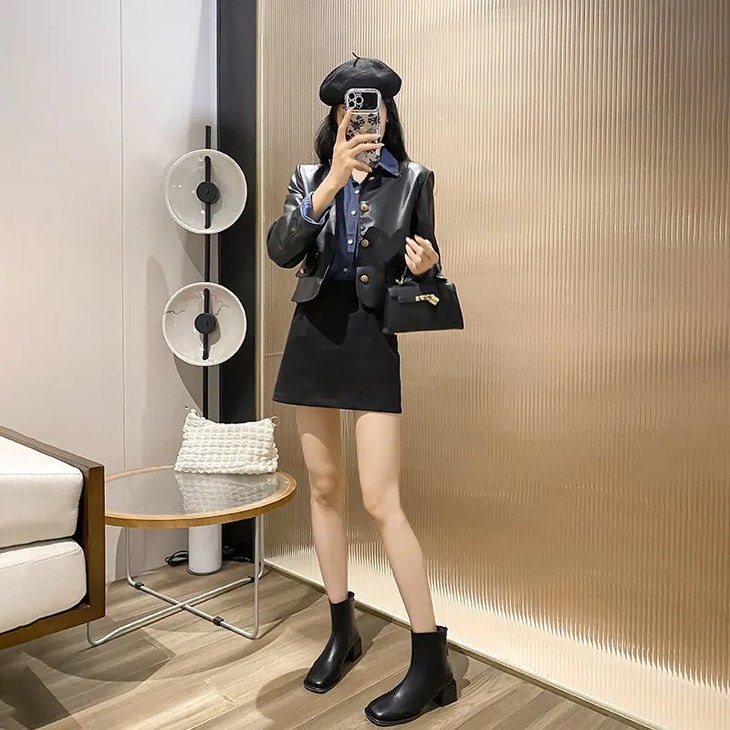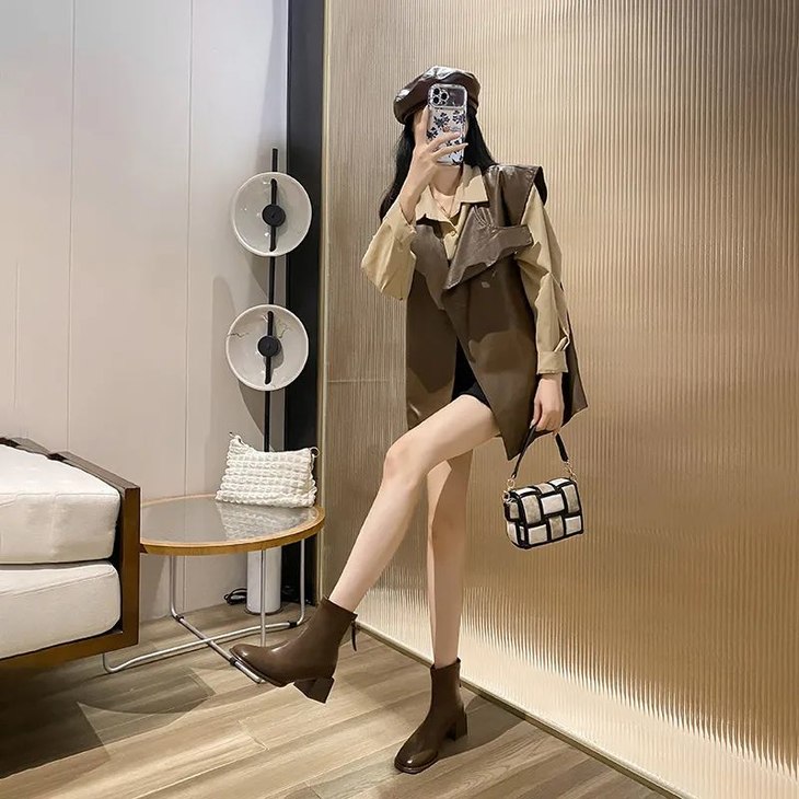 短靴是最不挑穿搭的了,极其推荐搭配打底裤+半身裙,或者搭配毛呢裤、牛仔裤也是很不错的