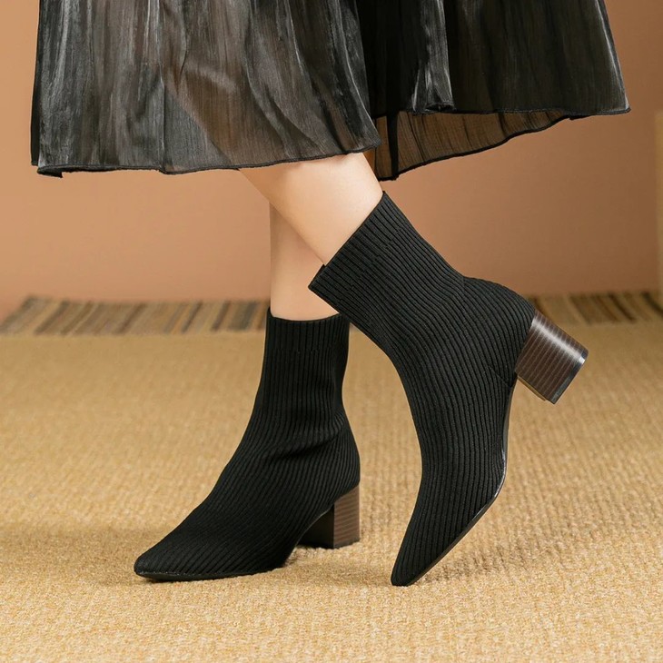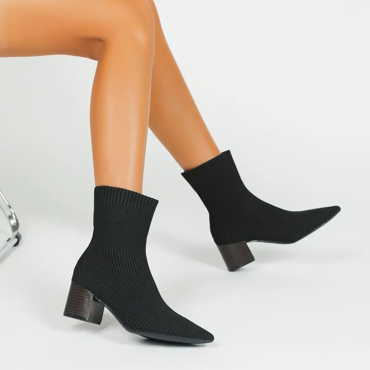 尖头款,尖尖的鞋头,修长的鞋型,紧贴小腿的设计,有着显瘦,拉腿的神奇效果。