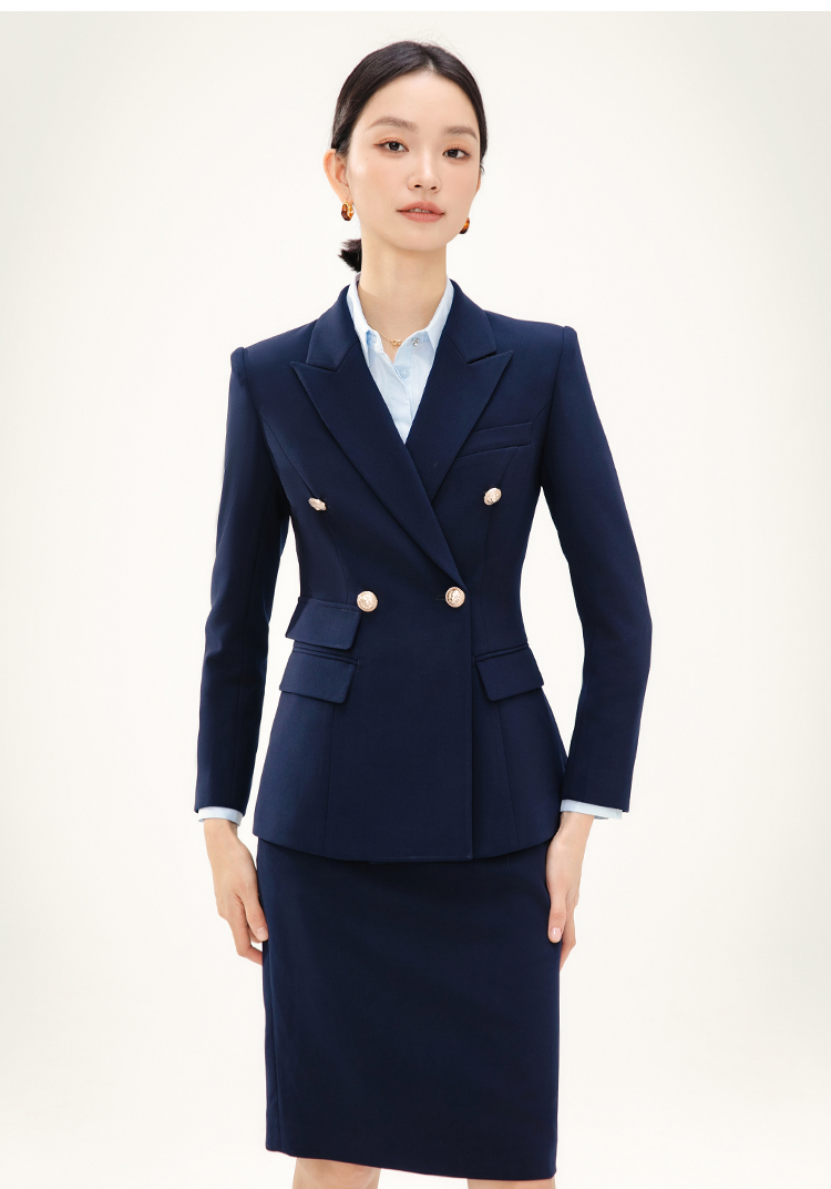 藏青色西装套装女2024新款酒店经理珠宝店前台工装职业气质工作服