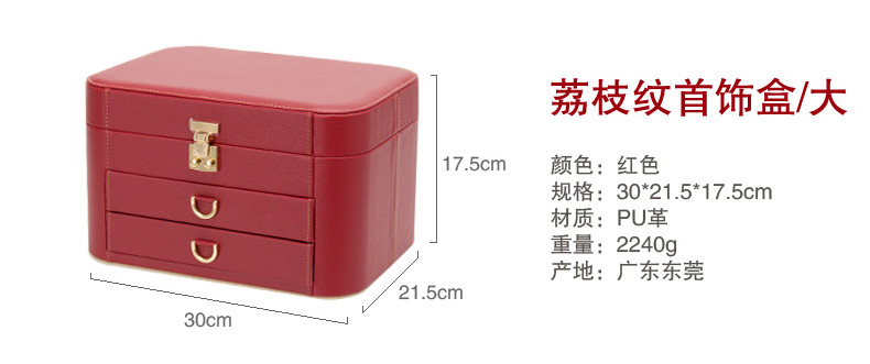 【6F】多样屋荔枝纹首饰盒结婚订婚三金珠宝带锁多层大容量高档收纳盒(中)