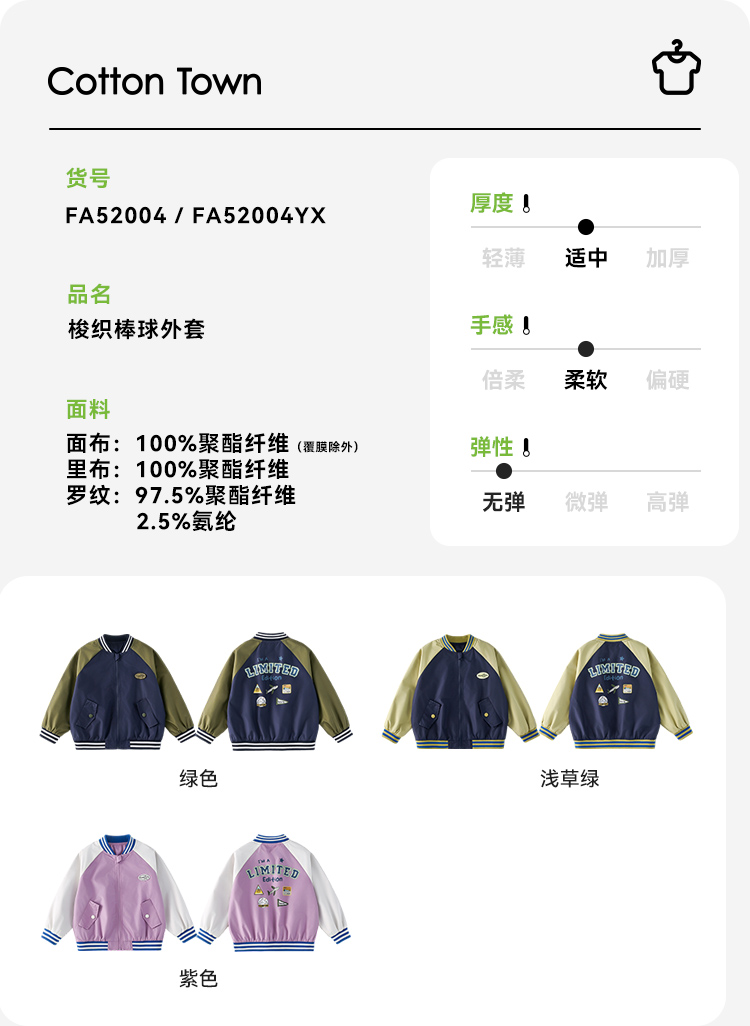【户外棒球外套】棉花堂梭织棒球外套 4级防水 防风 防污 A类 FA52004YX