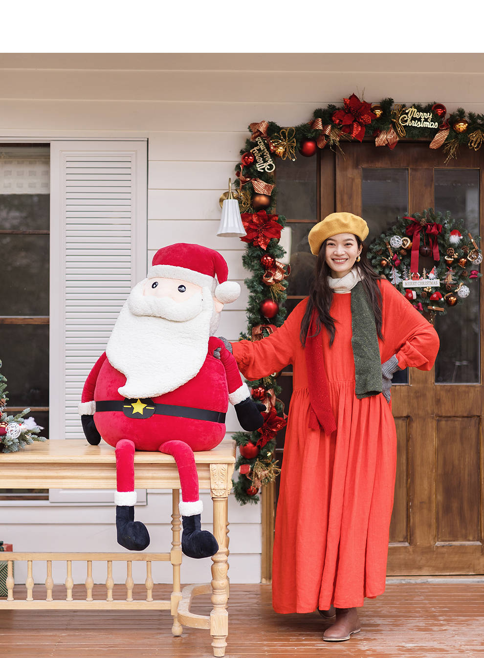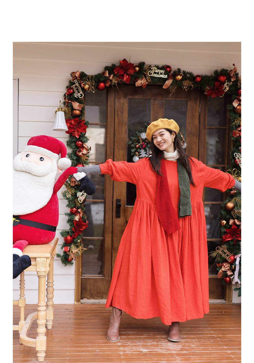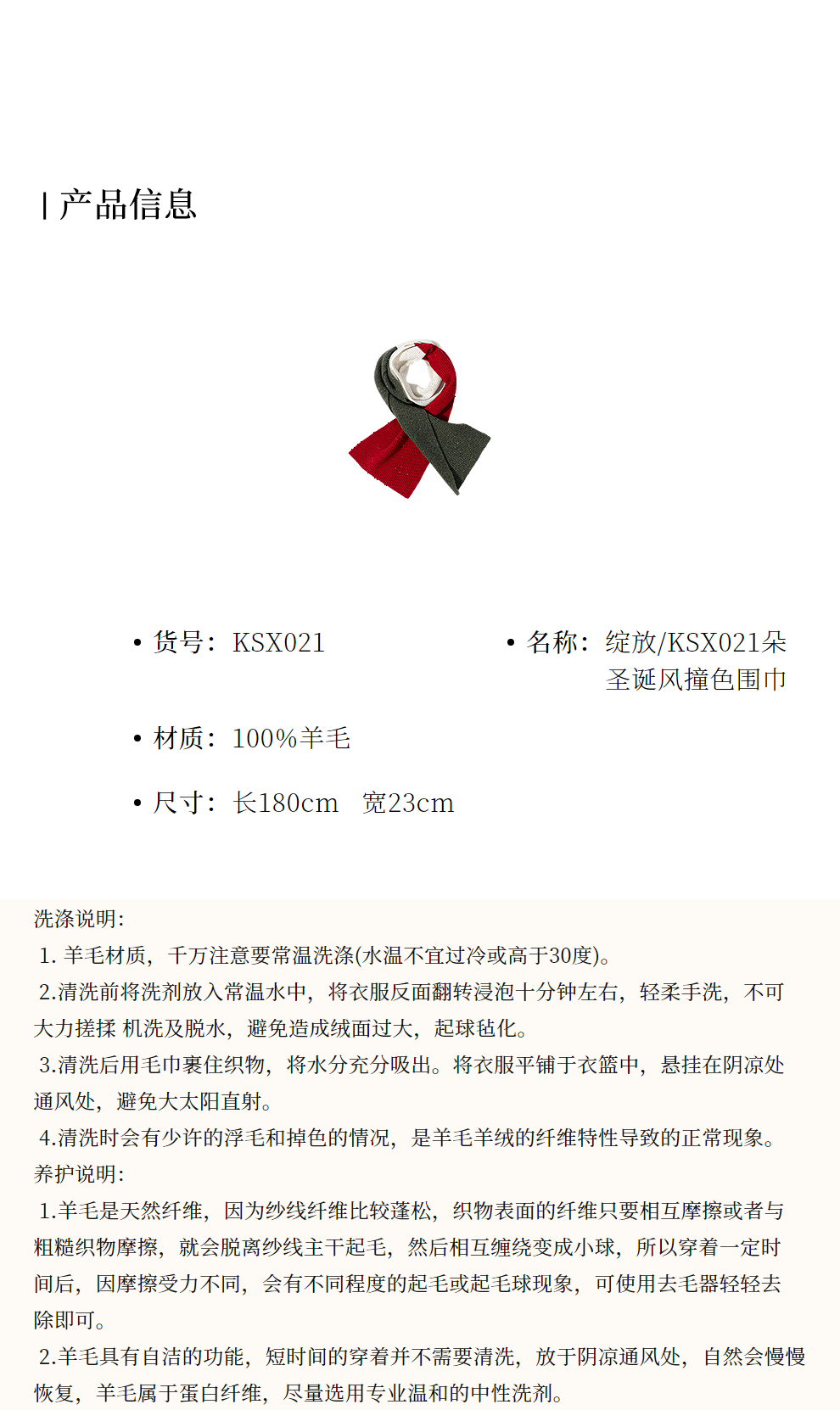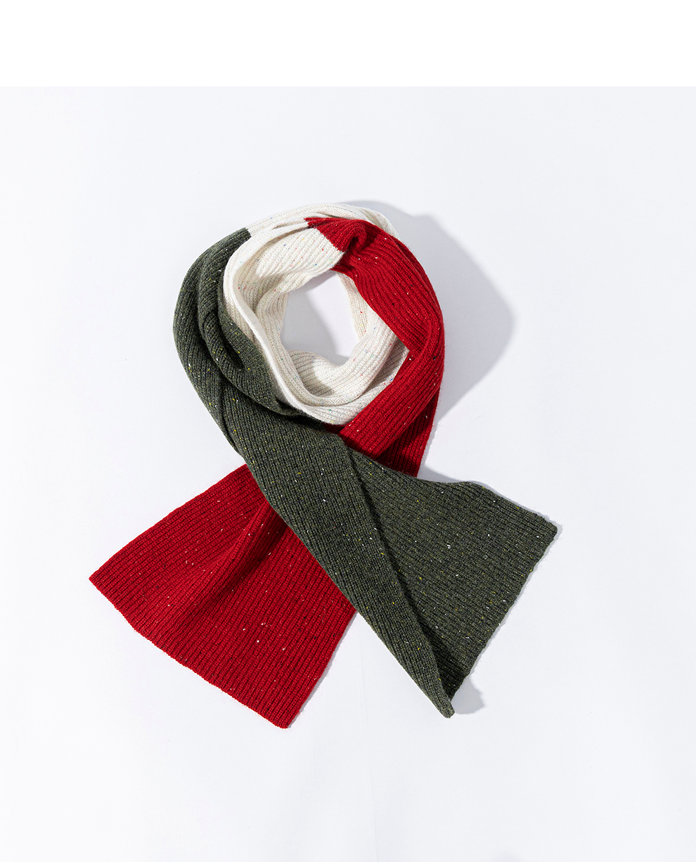 绽放/KSX021朵纯羊毛圣诞风撞色围巾女冬季新年韩系高级氛围感