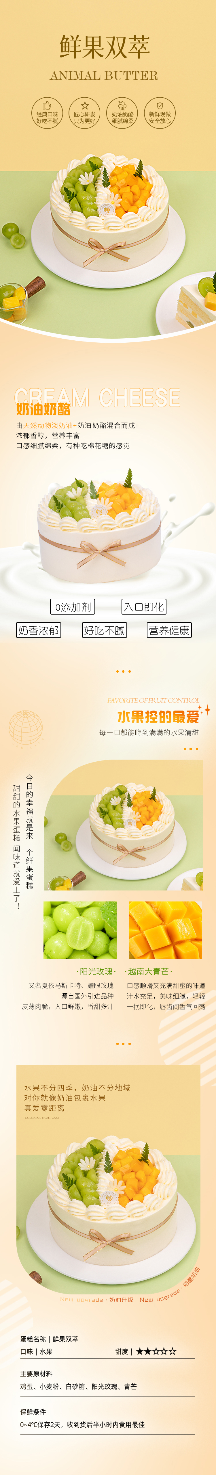 【动物奶油蛋糕,100%新鲜水果】新品--鲜果双萃2磅蛋糕,免费送货