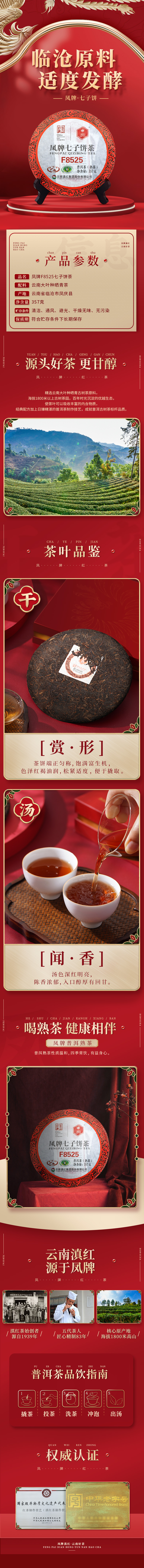 凤牌茶叶云南普洱茶叶熟茶饼陈年七子饼茶F8525普洱茶357g