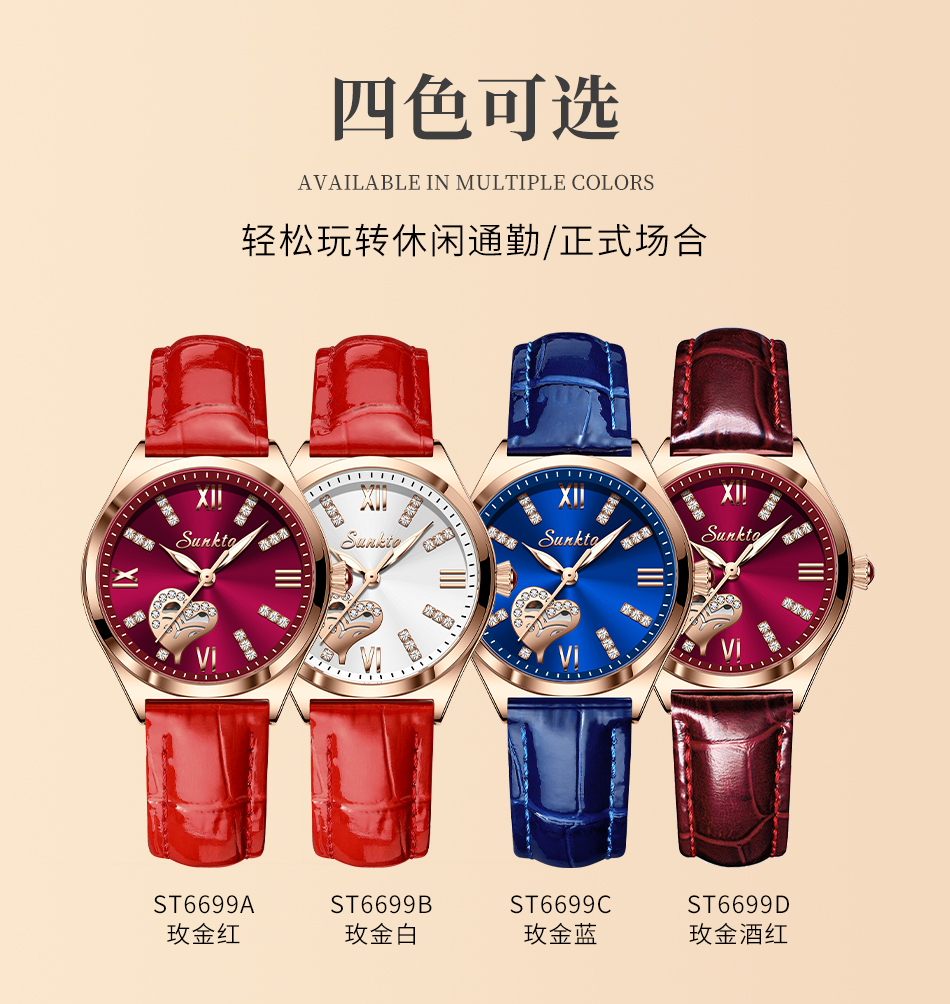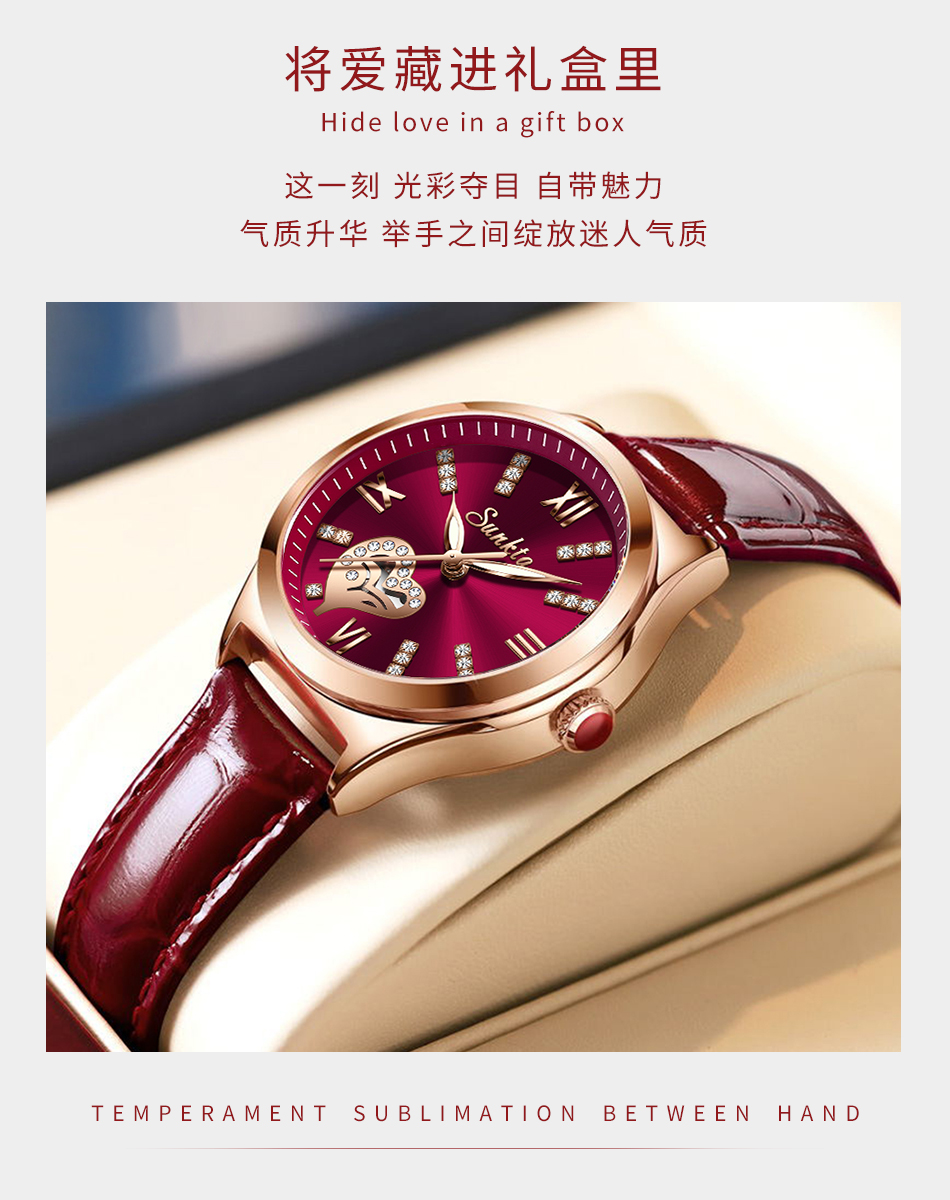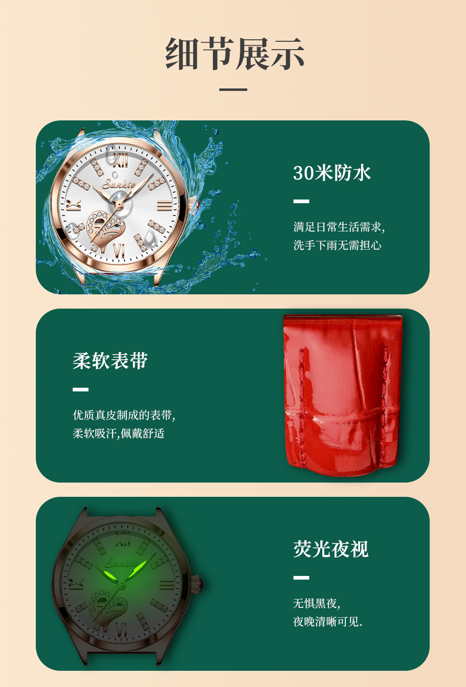 SUNKTA 桑达 爱心浪漫镂空韵味时尚腕表ST6699 经典女士手表 百搭风格